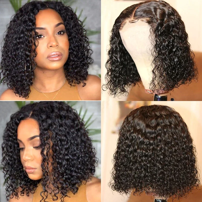 Короткий кудрявый парик Боб, прозрачные кружевные передние парики, парики без повреждения кутикулы, бразильские парики с глубокой волной, вьющиеся передние парики из человеческих волос