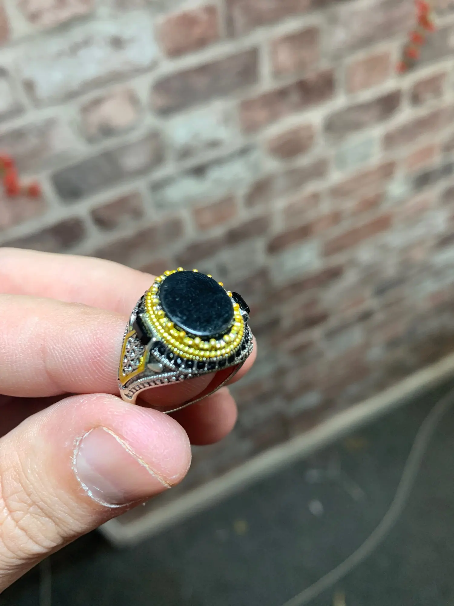 кольца кольцо мужское кольца 2021 тренд бижутерия Кольца мужские двухцветные в винтажном стиле, элегантные инкрустированные черными камнями, в стиле хип-хоп и панк, Свадебная и вечерняя мода, подарочные украшения
