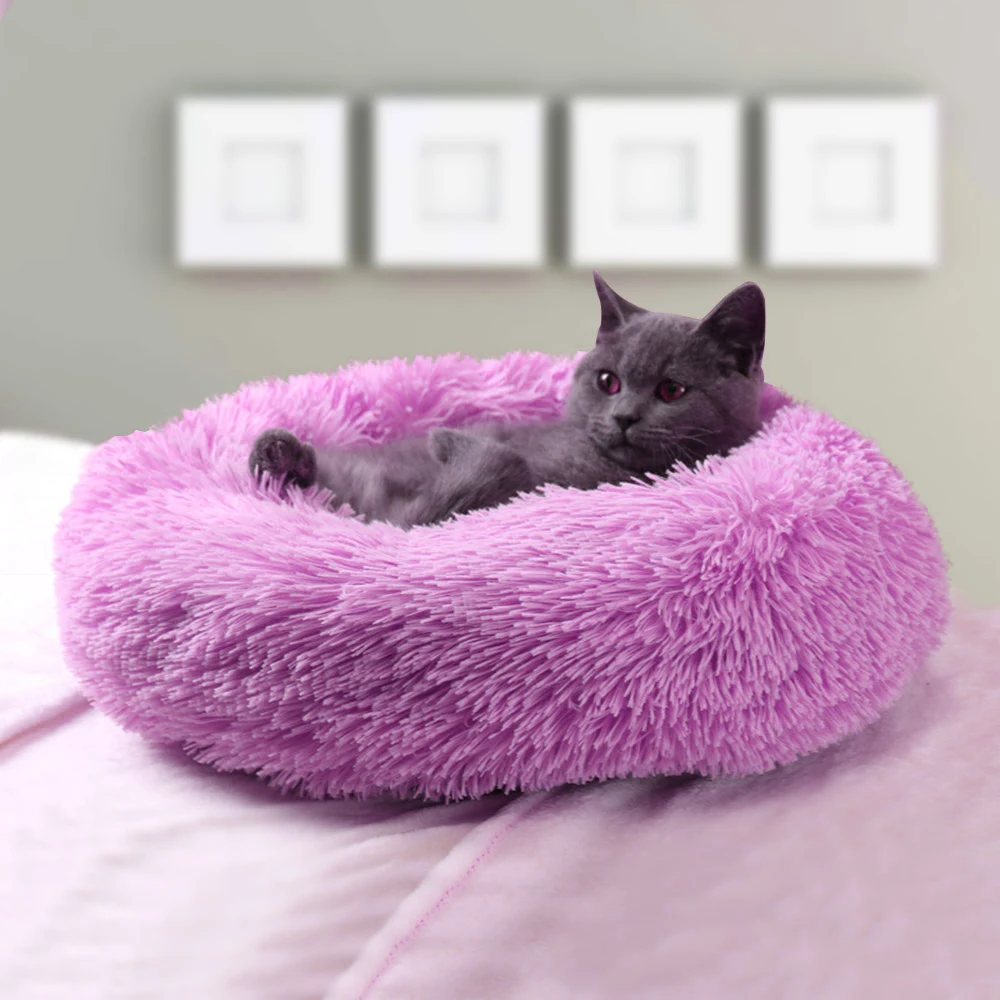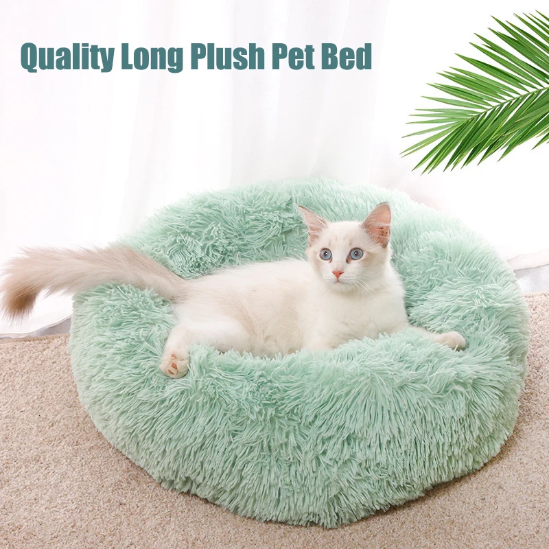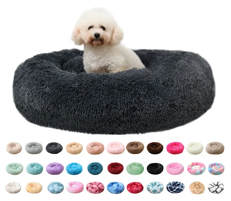 Длинная плюшевая кровать для питомца, круглый диван, коврик для собаки в форме пончика, спальный мешок для кошек, кровати для щенков, теплые кровати для собак, мягкая подушка, коврик для бургера