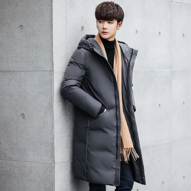 Мужская длинная куртка на утином пуху с капюшоном, Мужская Толстая ...