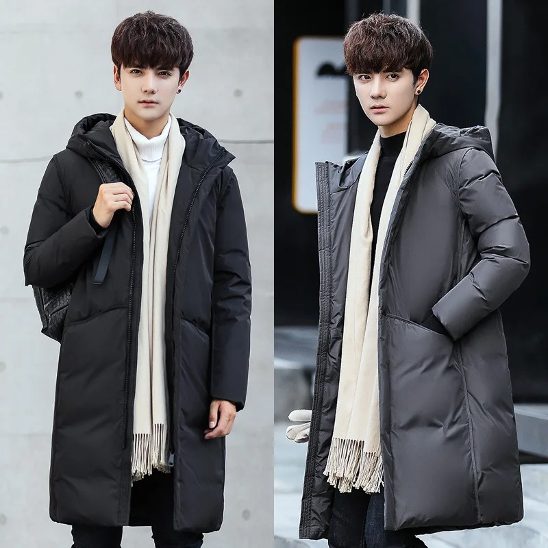 Мужской пуховик с капюшоном, длинный теплый белый пуховик, зима 2021