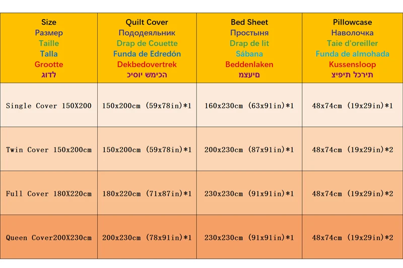 ★★Одна крышка 150x200:☛Двойная крышка: 150x200 см * 1☛Плоский лист: 160x230 см☛Наволочка: 48x74 см * 1★★Двойная крышка 150x200 см:☛Двойная крышка: 150x200 см * 1☛Плоский лист: 200x230 см☛Наволочка: 48x74 см * 2★★Полное покрытие 180x220 см:☛Двойная крышка: 180x220 см * 1☛Плоский лист: 230x230 см☛Наволочка: 48x74 см * 2★★Королевский чехол 200x230 см:☛Двойная крышка: 200x230 см * 1☛Плоский лист: 230x230 см☛Наволочка: 48x74 см * 2