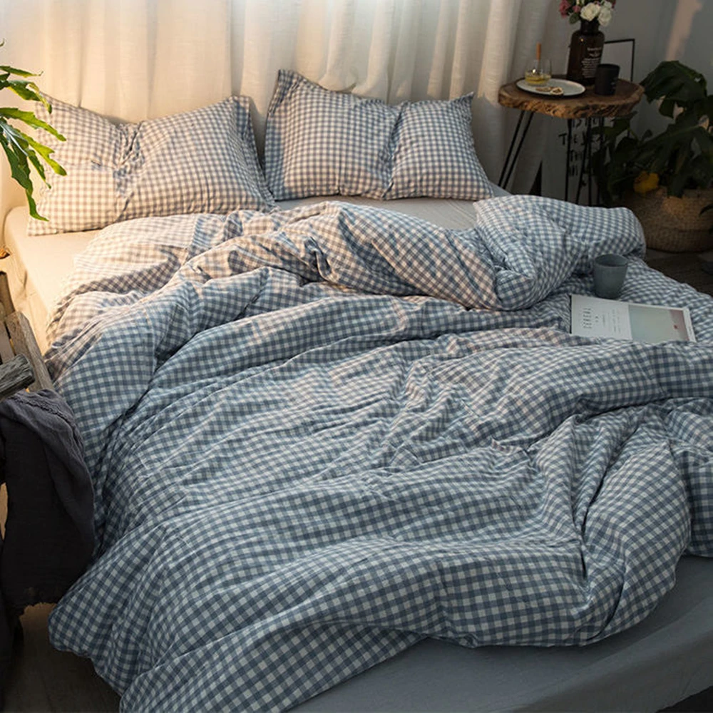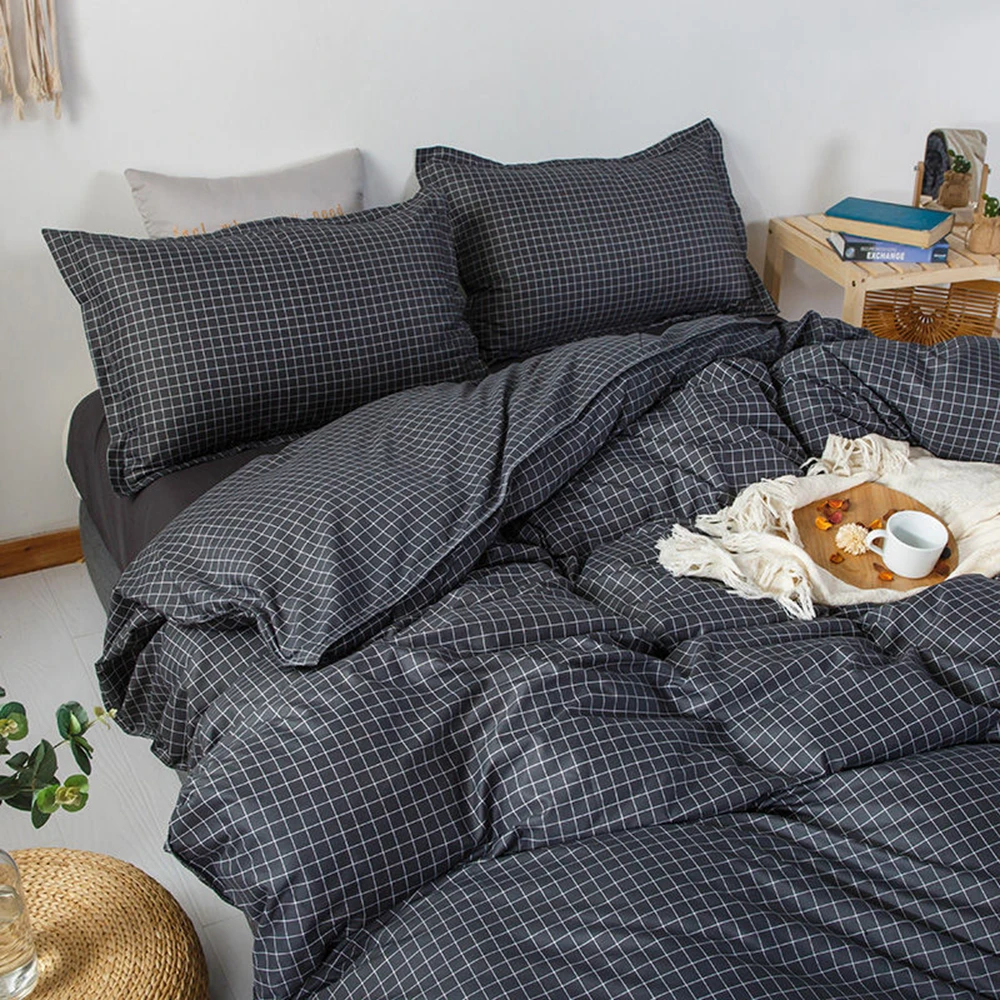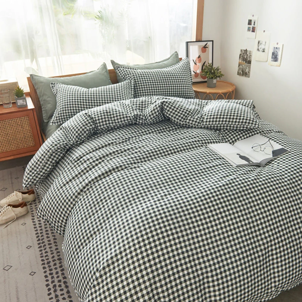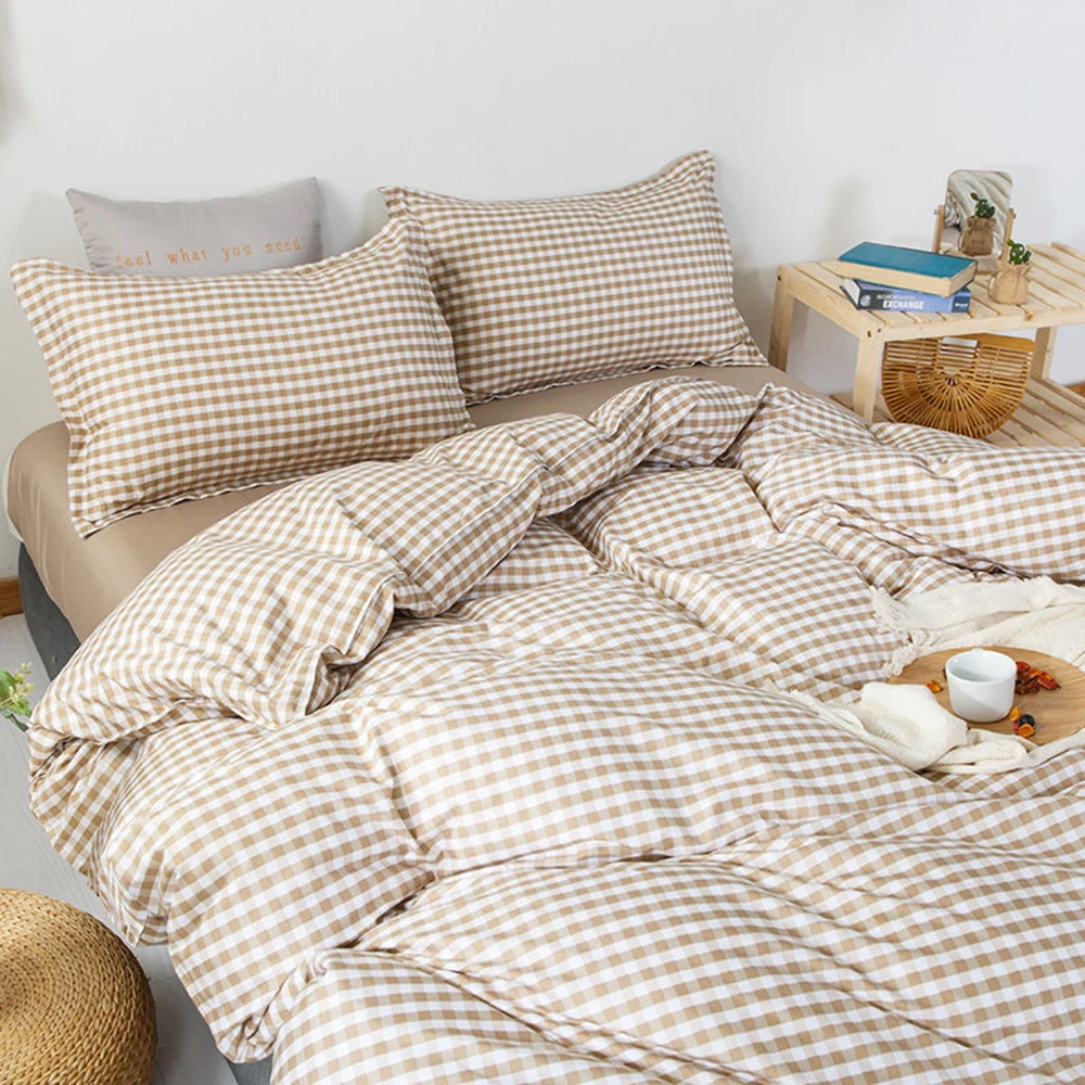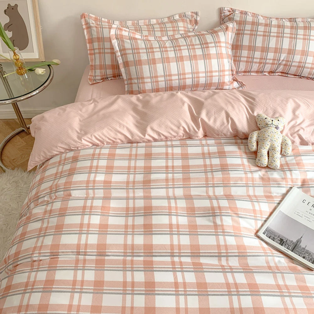 Комплект постельного белья в клетку, скандинавский комплект в розов...