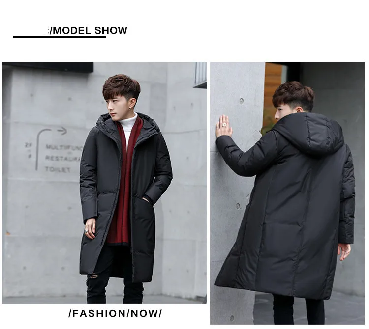 Мужская длинная куртка на утином пуху с капюшоном, Мужская Толстая ...