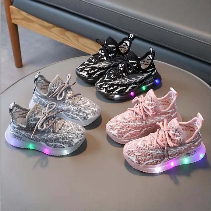 Кроссовки Детские со светодиодной подсветкой, дышащие светящиеся кеды, повседневная обувь для мальчиков и девочек, размеры 21-30