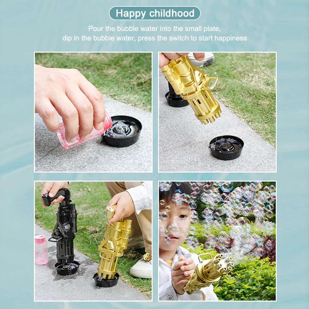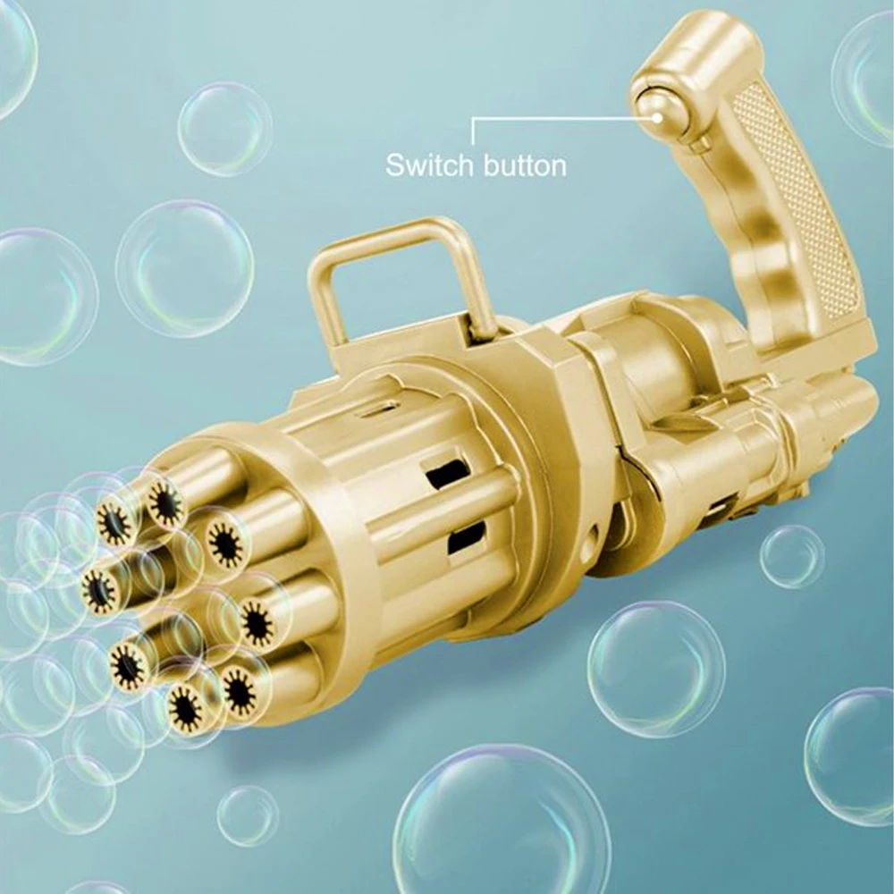 Детский автоматический пистолет для мыльных пузырей Gatling Bubble Gun, летняя игрушка с водой 2в1, подарочная игрушка, золотой