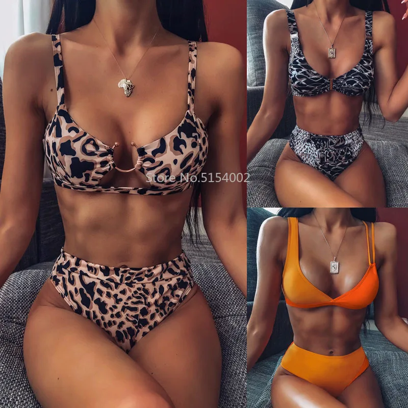 Женское леопардовое бикини с высокой талией и эффектом пуш-ап