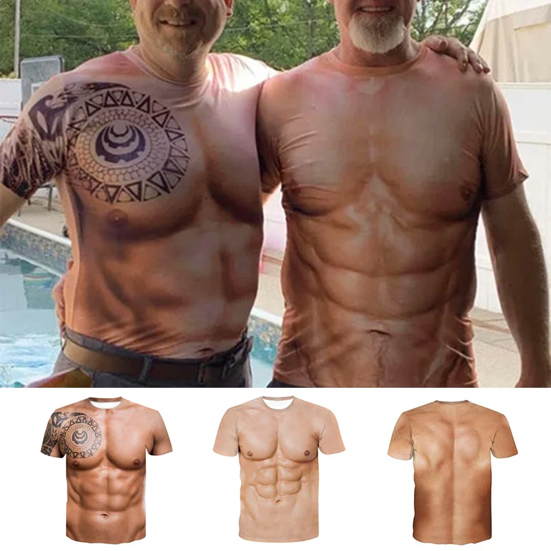 Летние мужские фальшивые мускулы футболки с 3D принтом татуировок с...