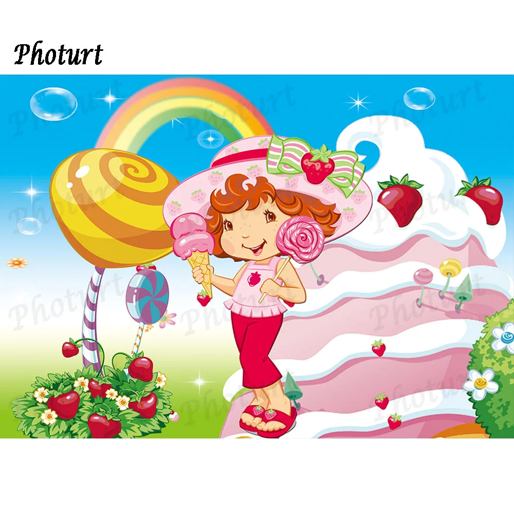 Фон для фотографирования с изображением клубники и короткого торта для девочек, баннер для фотографий на день рождения, милая конфета, фон для фотографий, реквизит для украшения