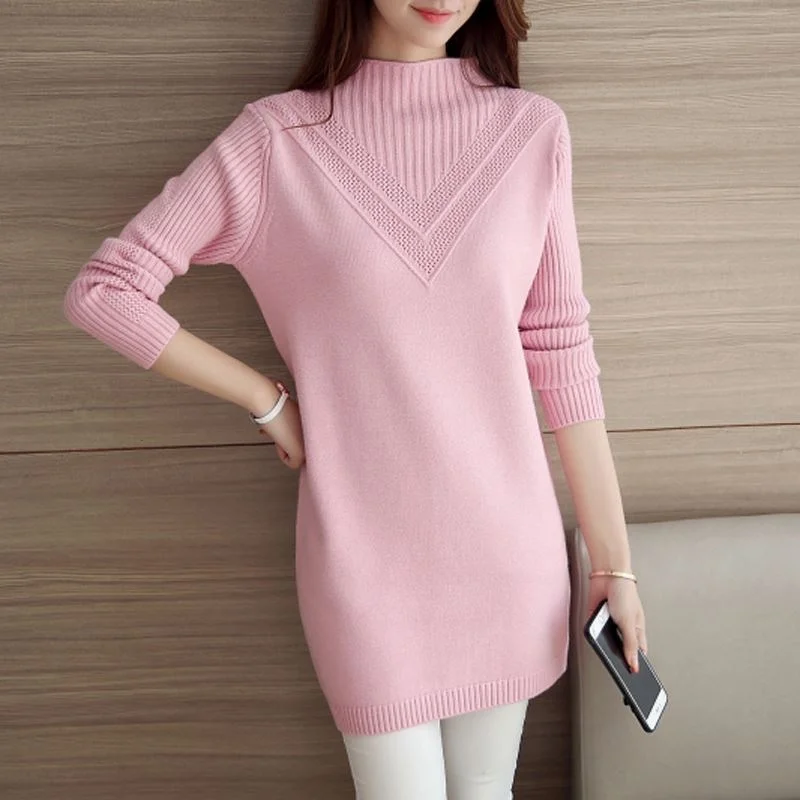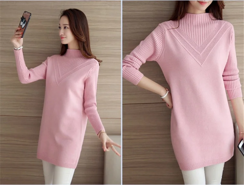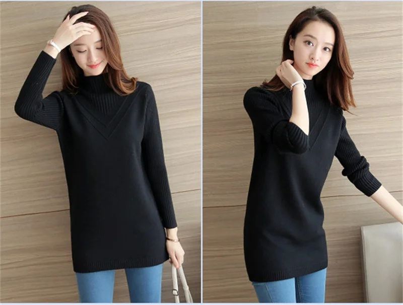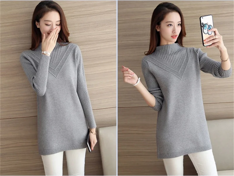 Свитер женский трикотажный, однотонный, с длинным рукавом, на осеньзиму