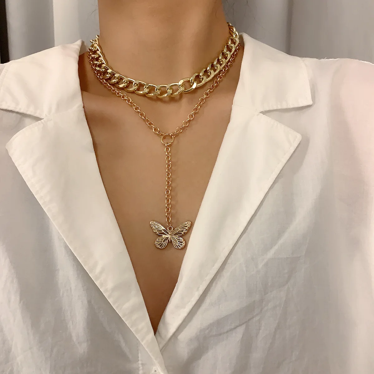 Винтажные золотые цепи бабочка подвеска ожерелье-чокер с подвесками...