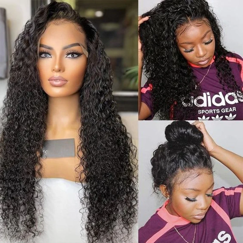 Парик черный кудрявый из синтетического кружева спереди, термостойк...