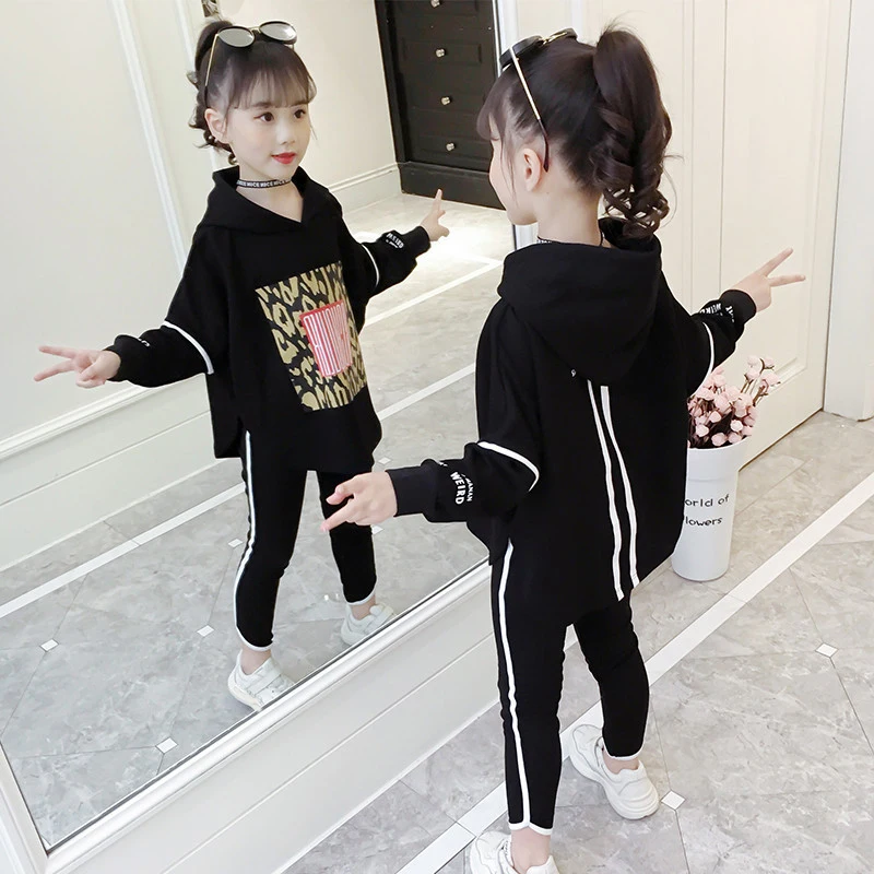 Свитер для девочек, костюмы в европейском и американском стиле, весна и осень 2021, новинка, детская повседневная одежда из 2 предметов для больших детей, комплекты одежды с капюшоном