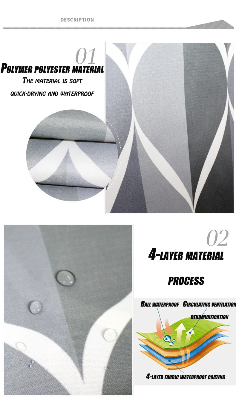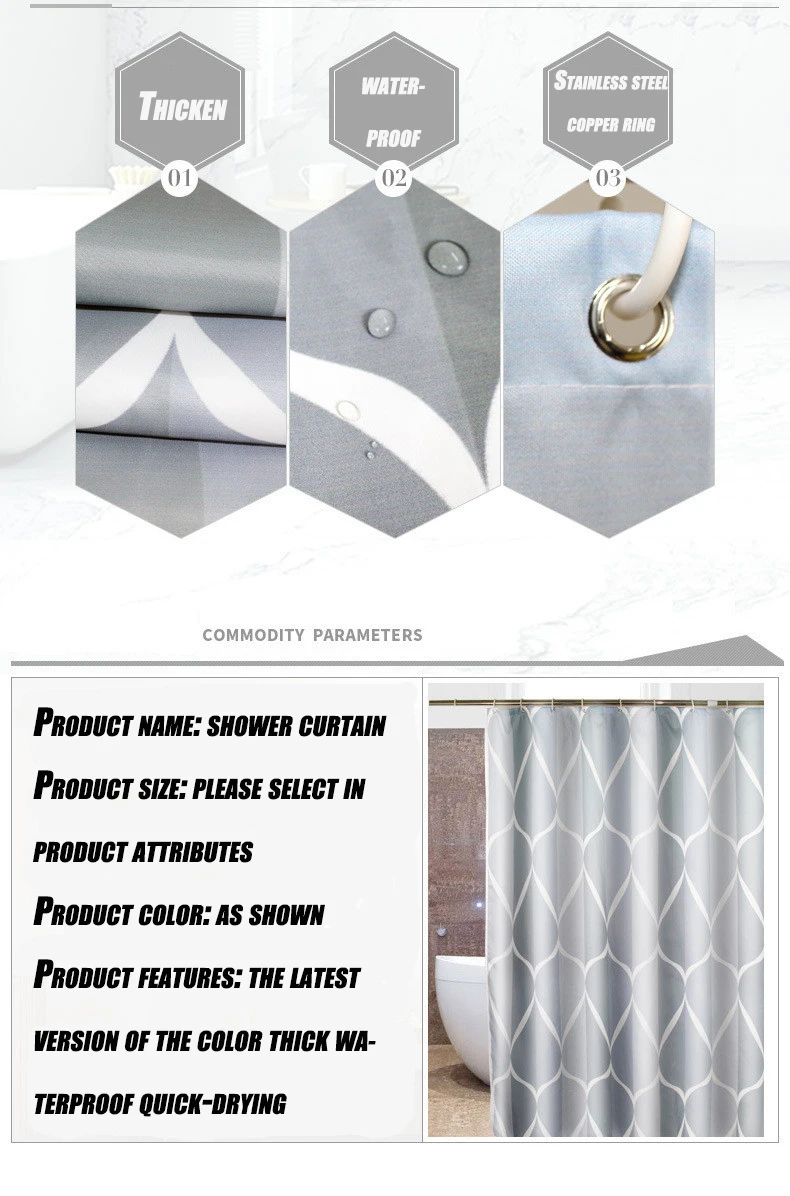 Занавеска для душа, водонепроницаемая быстросохнущая утяжеленная душевая занавеска из полиэстера, комплект для ванной комнаты, прочная и моющаяся, с крючками