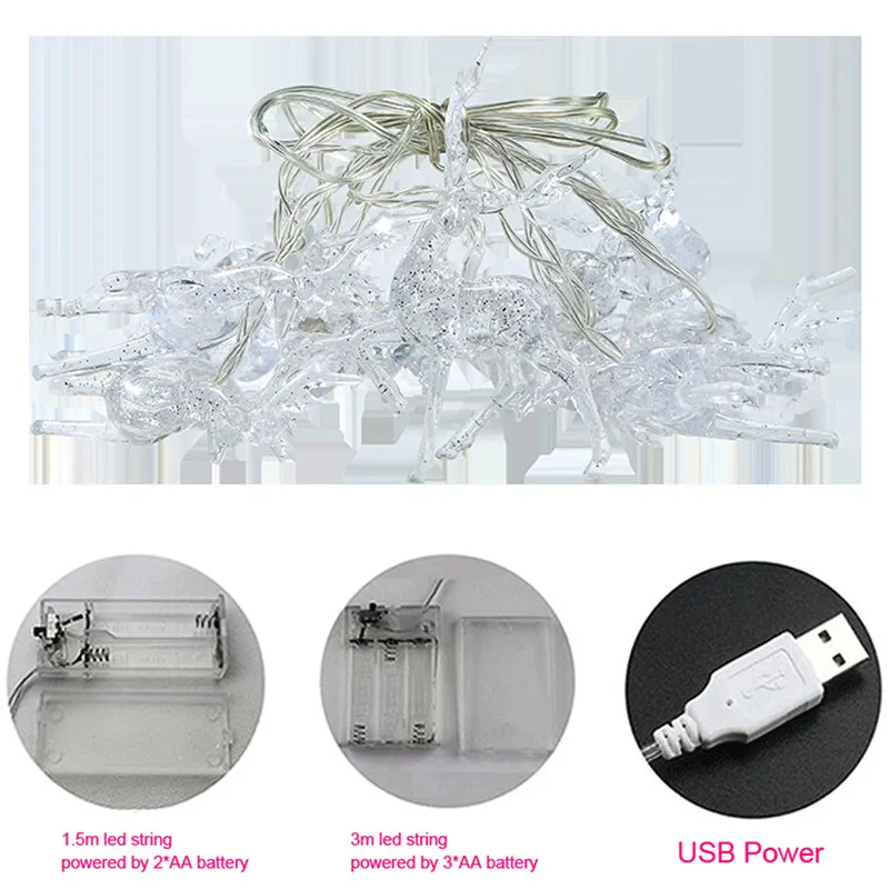 Рождественское украшение для гостиной с оленями, светодиодная Праздничная гирлянда, Сказочная гирлянда на 2-3 м с питанием от батареи для спальни, свадебного декора