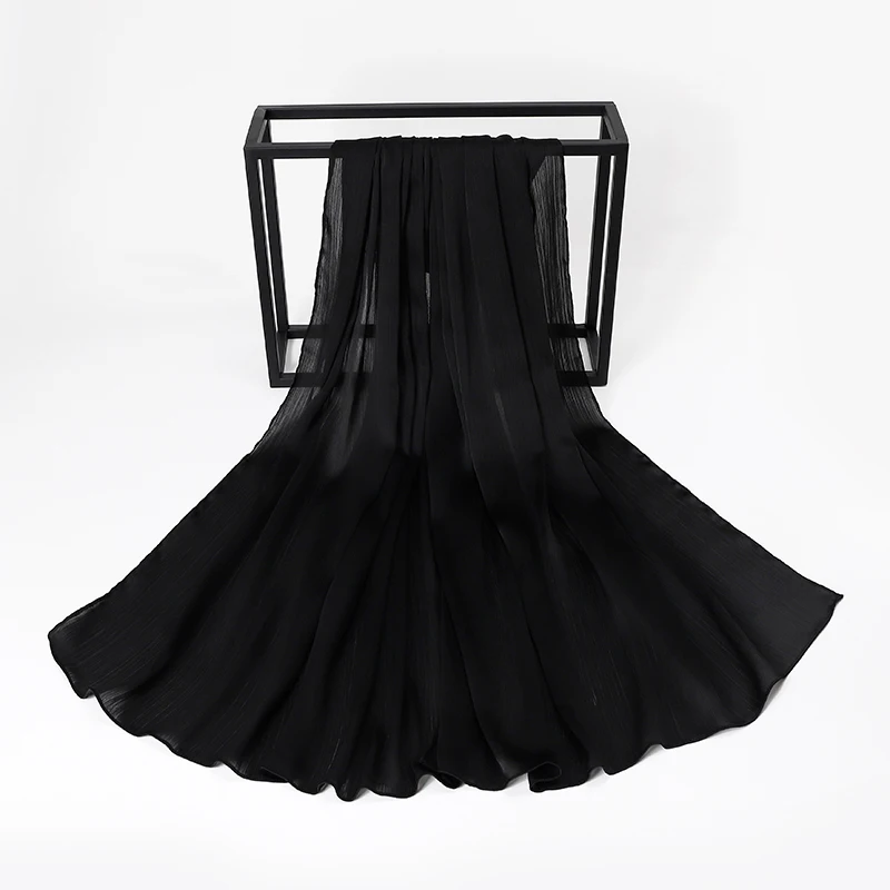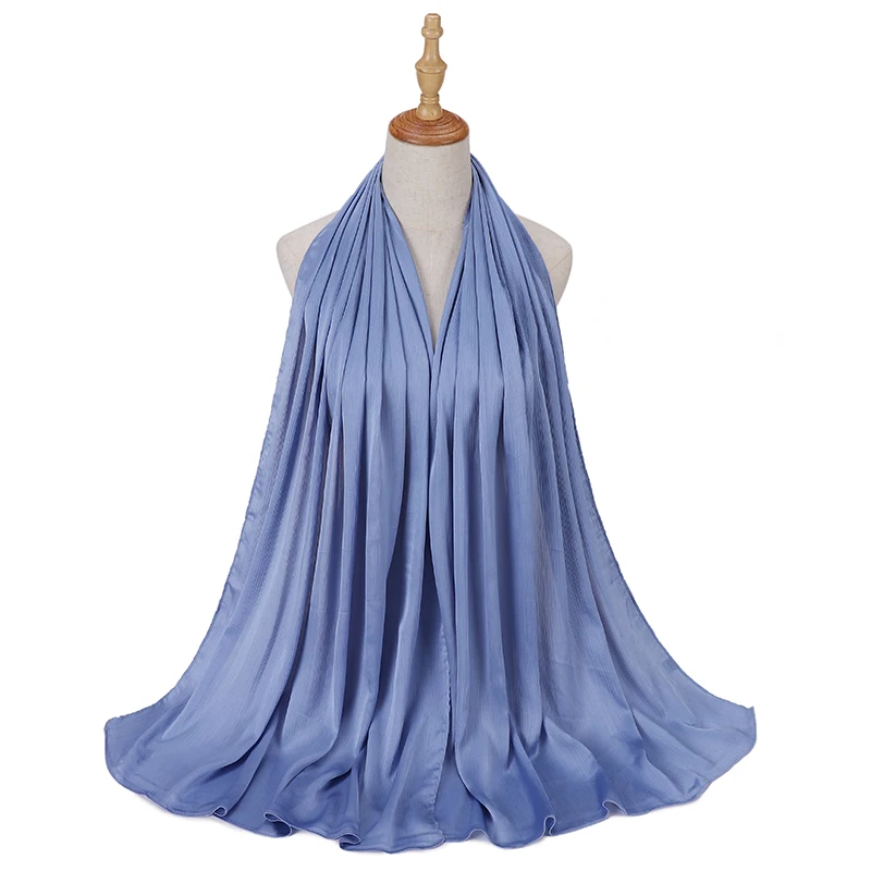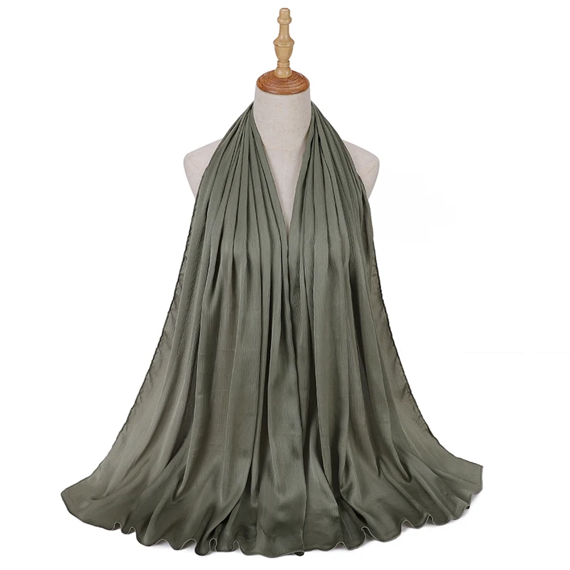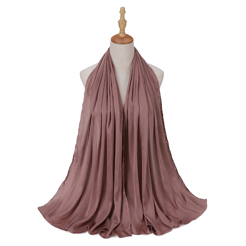 Женский хиджаб, сморщенный, атласный шелк, ощущение длинного размера, шали