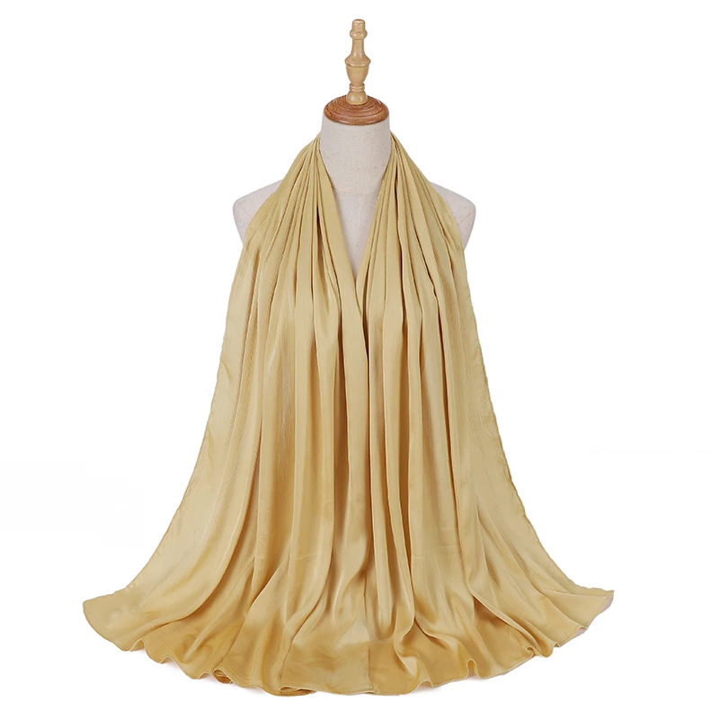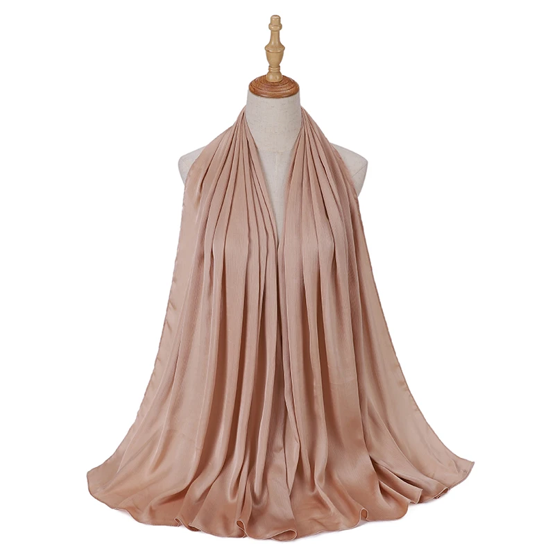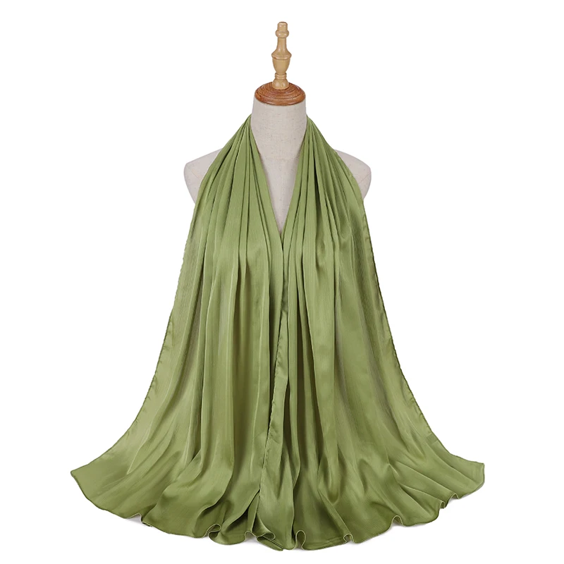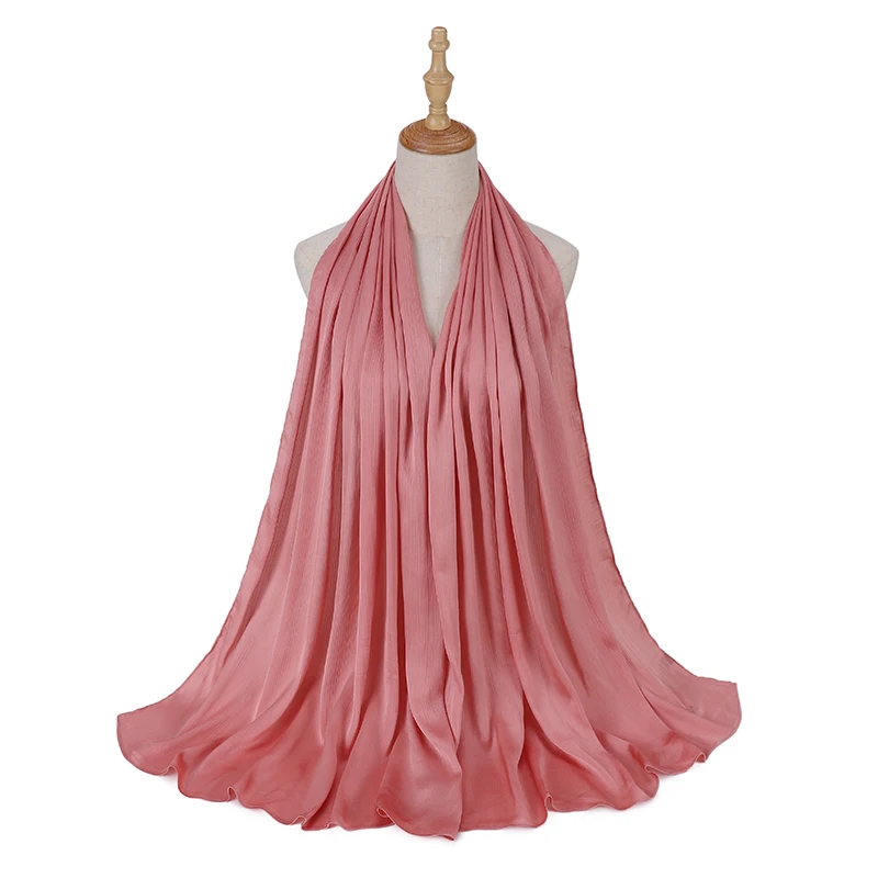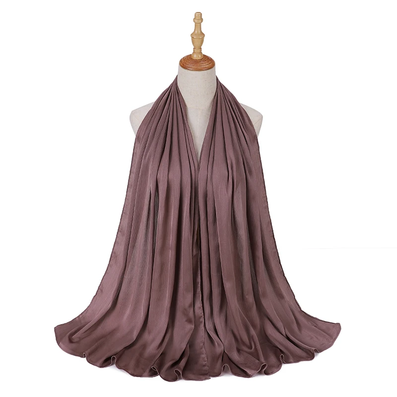 Новые сморщенные атласные шелковые хиджабы для женщин, длинные Солидные цвета, простые хиджабы 46 цветов