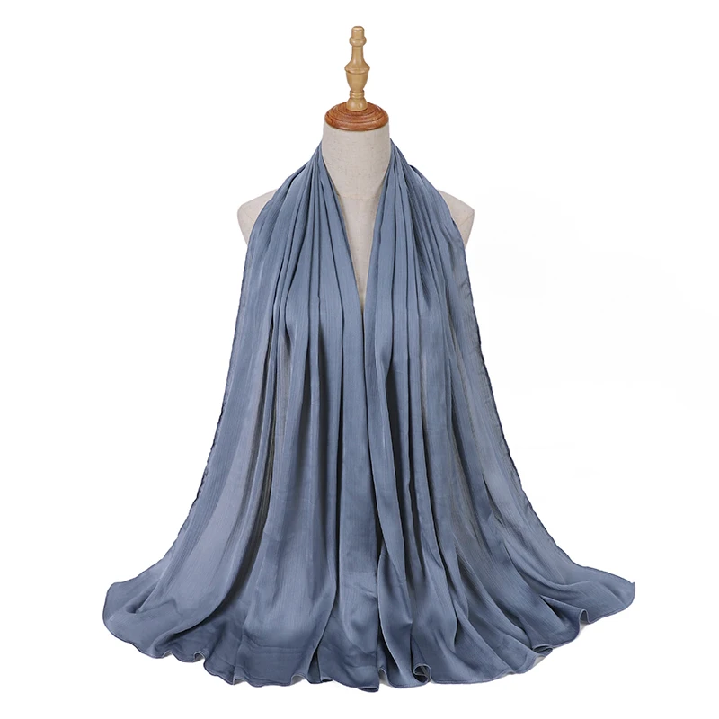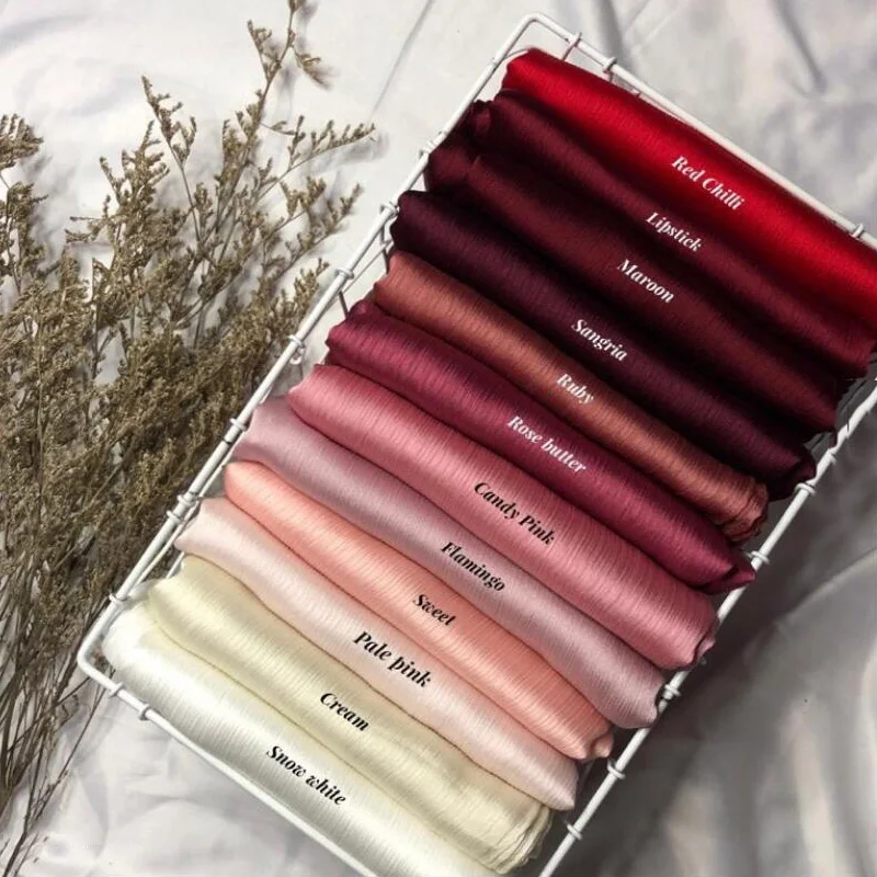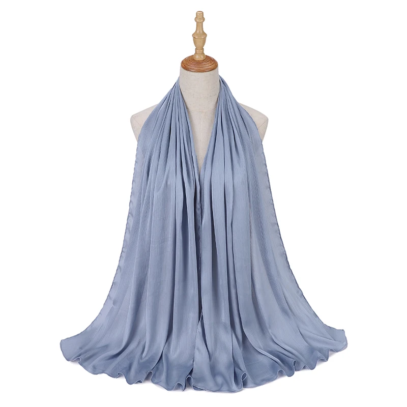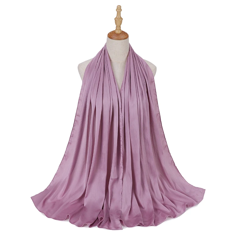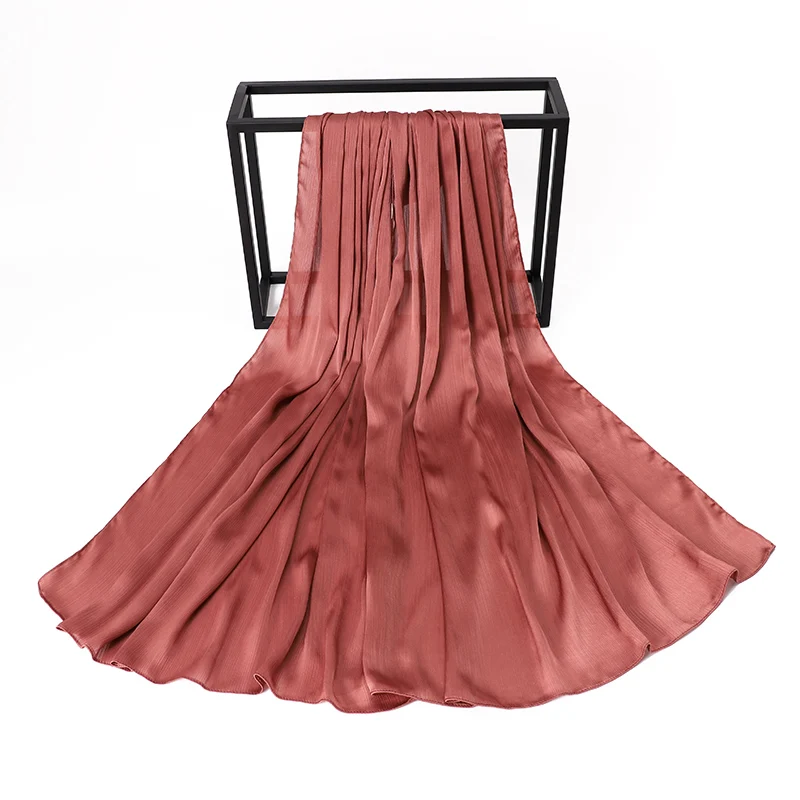 Новые сморщенные атласные шелковые хиджабы для женщин, длинные Солидные цвета, простые хиджабы 46 цветов