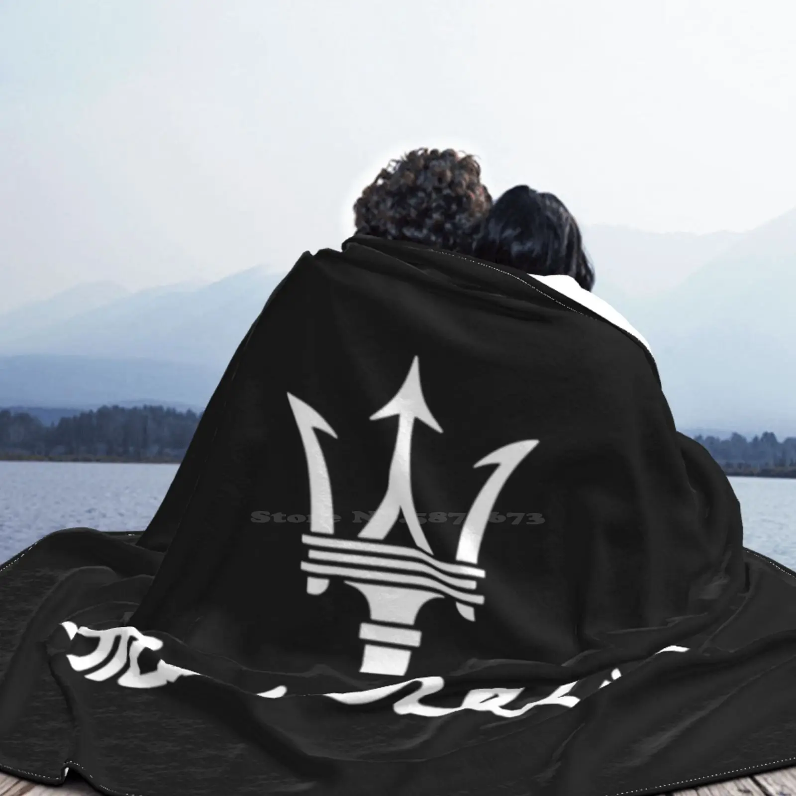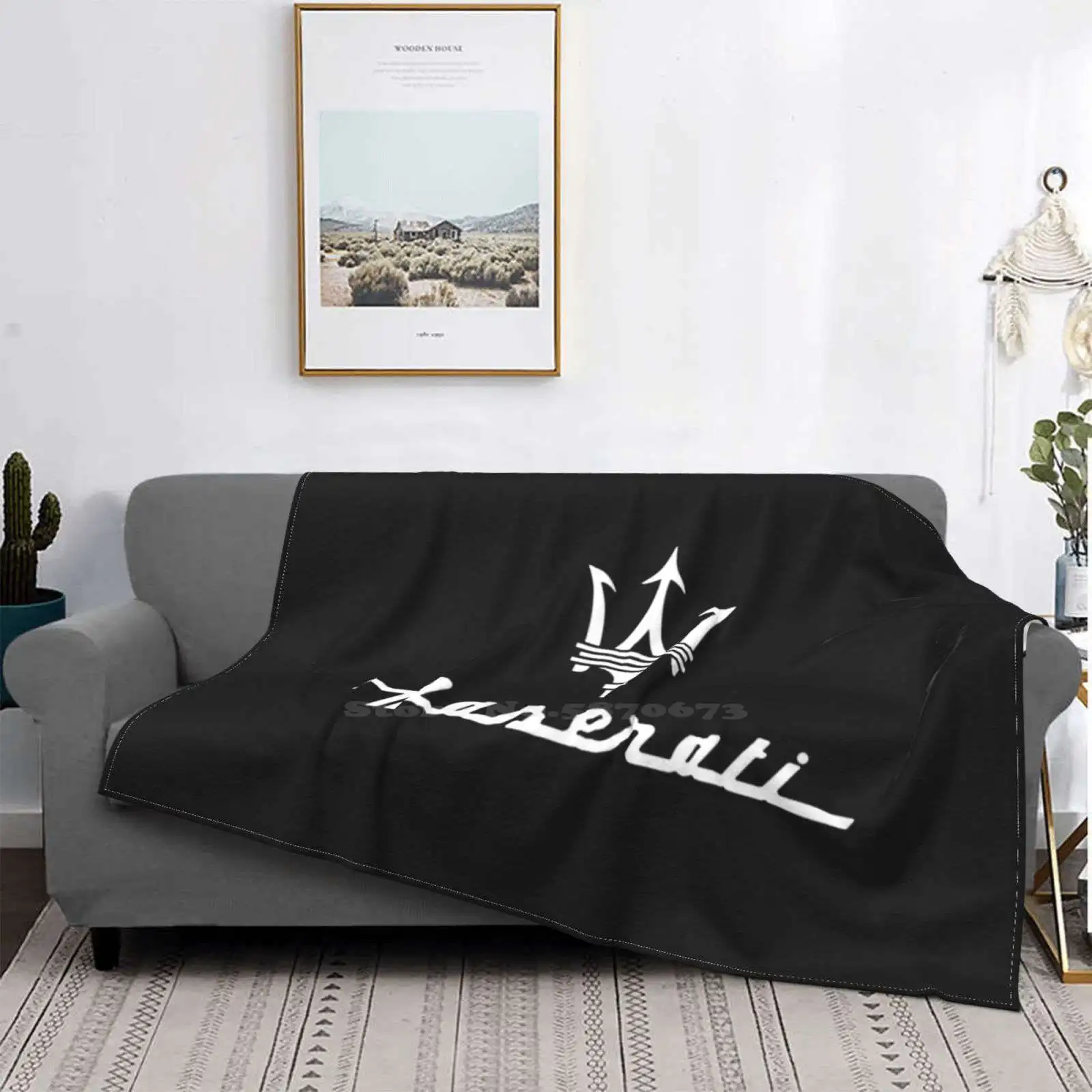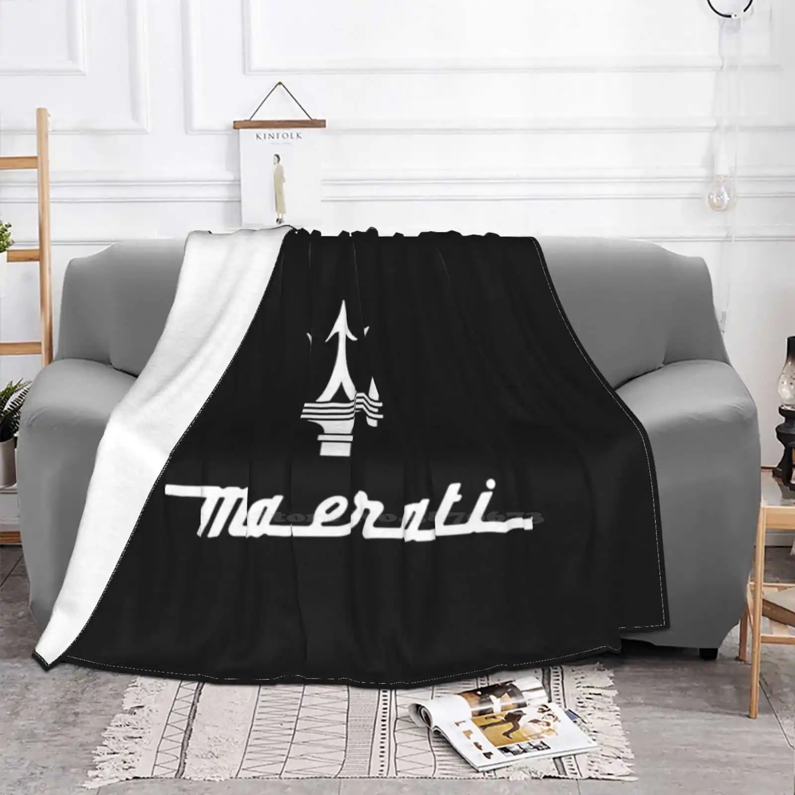 Белое удобное фланелевое одеяло с креативным дизайном Maserati с Латиноамериканским логотипом