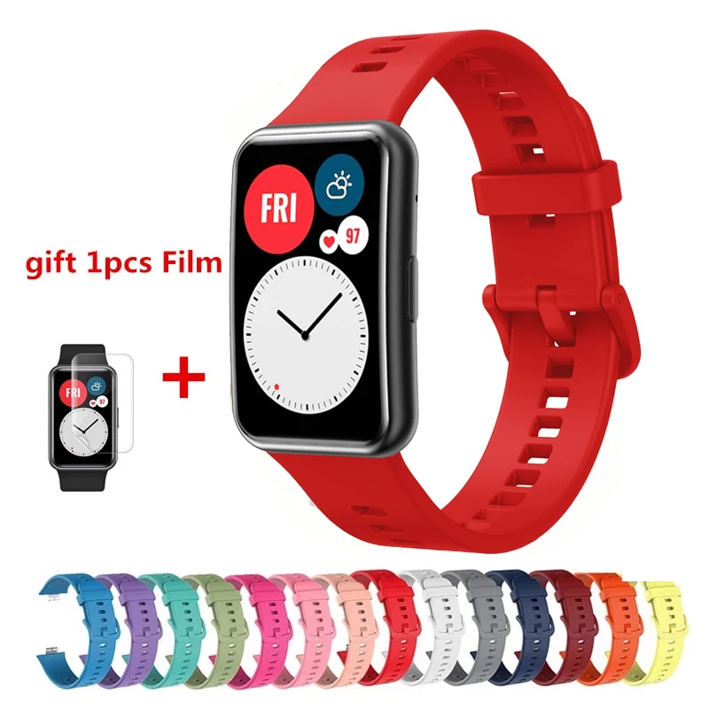 Ремешок силиконовый для Huawei Watch Fit, оригинальный сменный Браслет с защитой экрана часов, аксессуары для Huawei Watch Fit