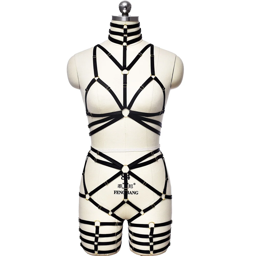 Бондаж в стиле панк, ремень-подвязка, набор для клетки, сексуальное женское нижнее белье, черный укороченный топ, фетиш, пояс-портупея