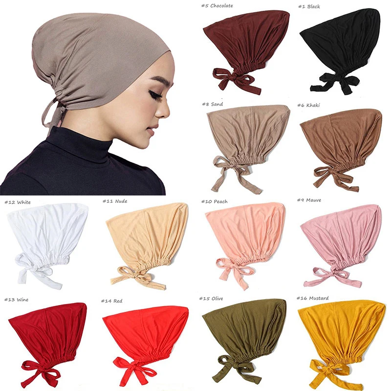 Арабский мусульманский тюрбан, Модальная эластичная Нижняя крышка, веревка для галстука, хиджаб, однотонная регулируемая модель для женщин, Кепка для рака, Кепка