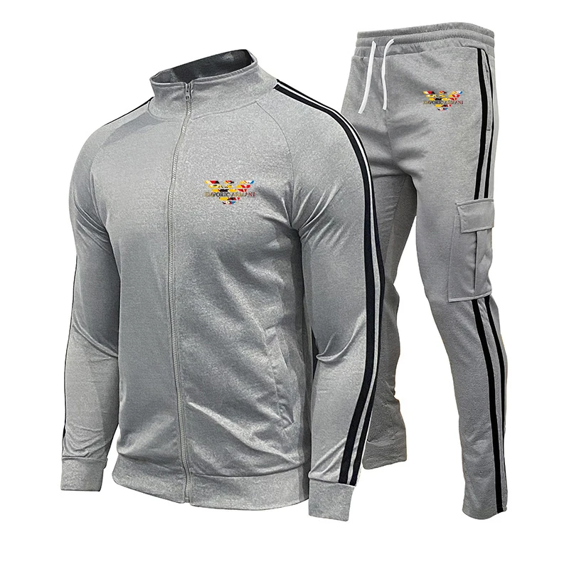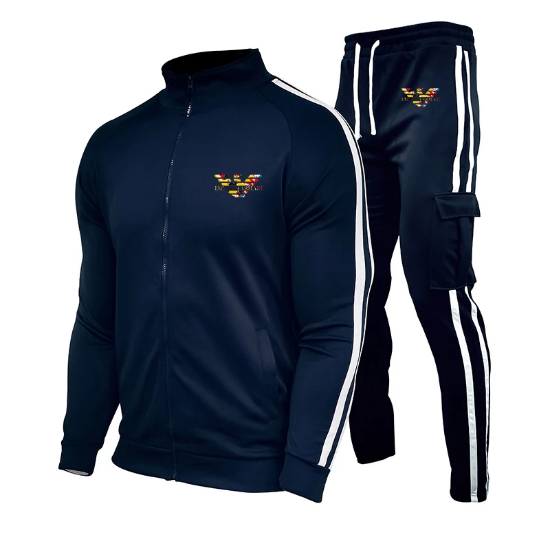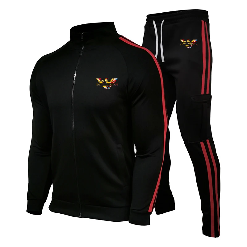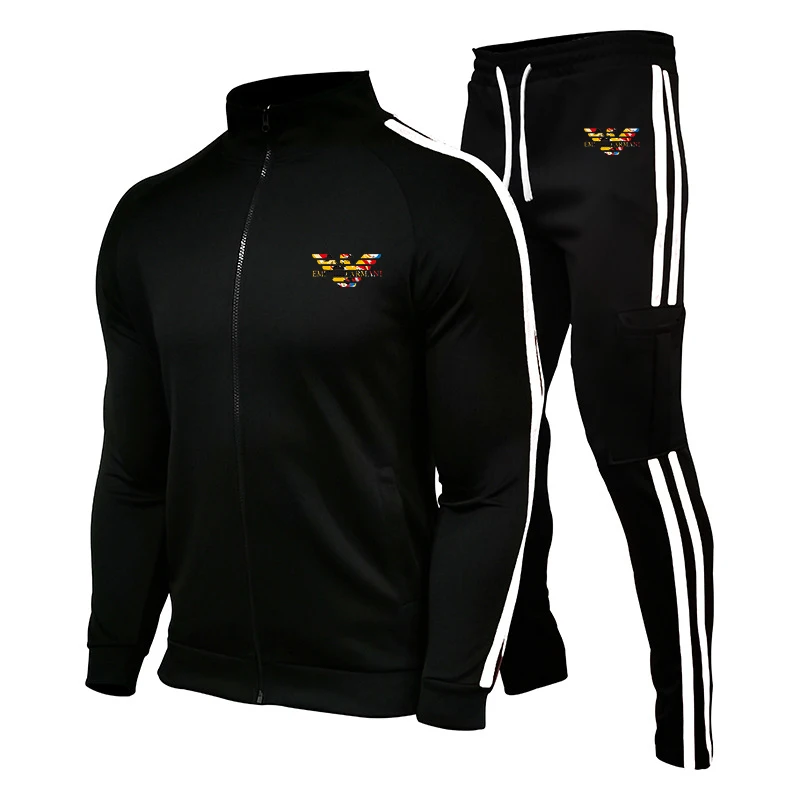 Новинка 2021, мужской костюм с принтом, брендовый мужской костюм, спортивная одежда из полиэстера, костюм из двух предметов на молнии для фитнеса и бега на осень и зиму