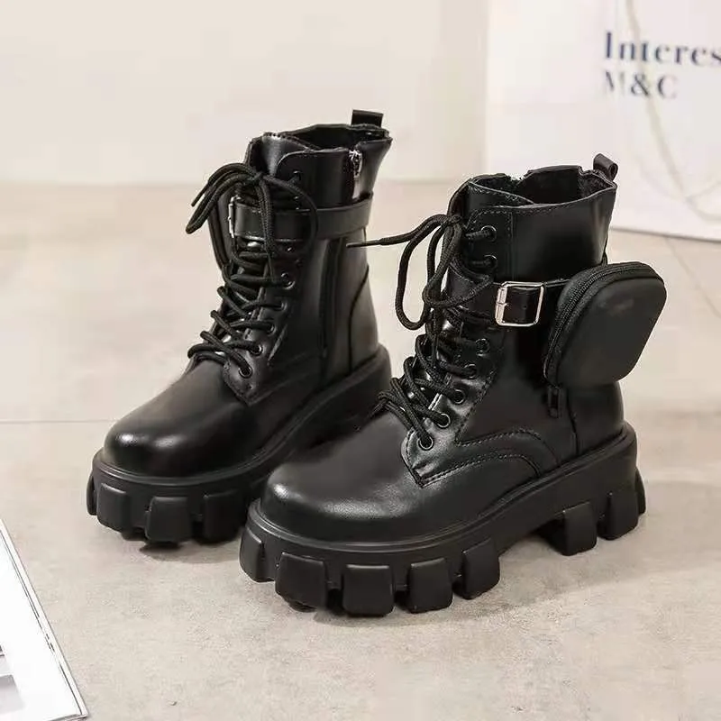Женские ботильоны на шнуровке с карманами, женские черные ботильоны...