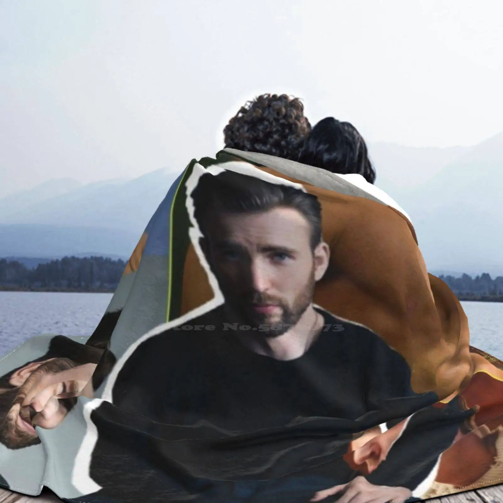 Ворсистое мягкое одеяло с изображением Криса е, диванакроватиПодарки для путешествий, милый популярный фанат, Стив Роджерс, коллаж, Эвана