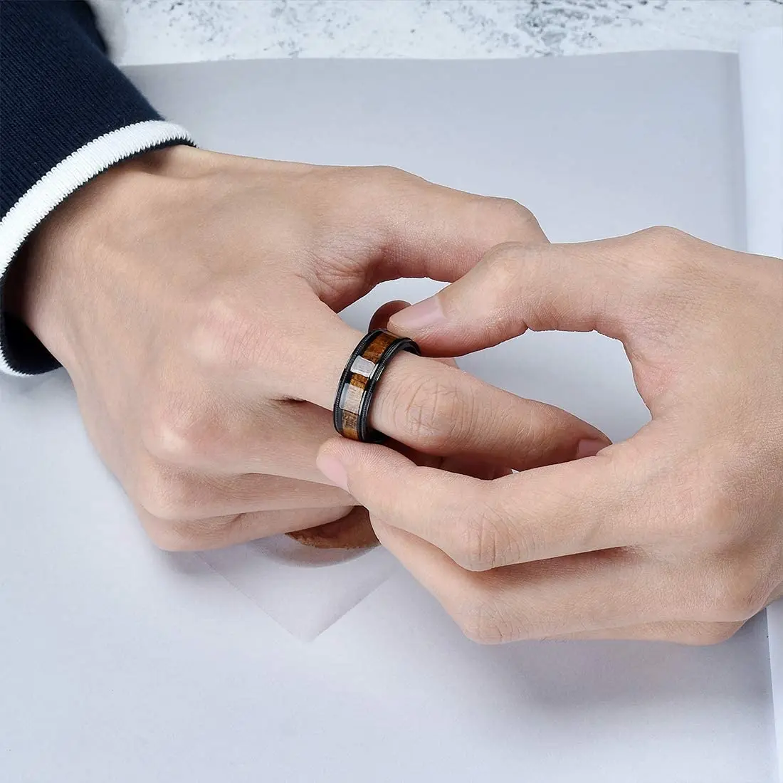 Кольцо из вольфрамовой стали, с отделкой под дерево, 8 мм