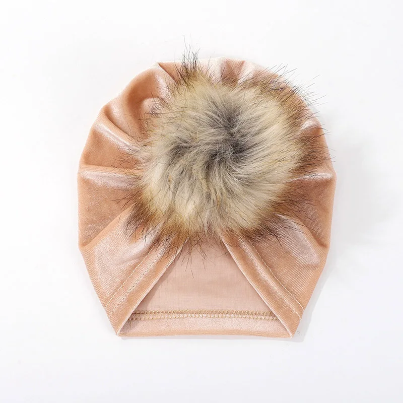 Зимняя детская шапка с помпоном, бархатные леопардовые шапки с принтом для маленьких девочек и мальчиков, шапка-тюрбан, однотонная детская Шапка-бини, теплые детские аксессуары