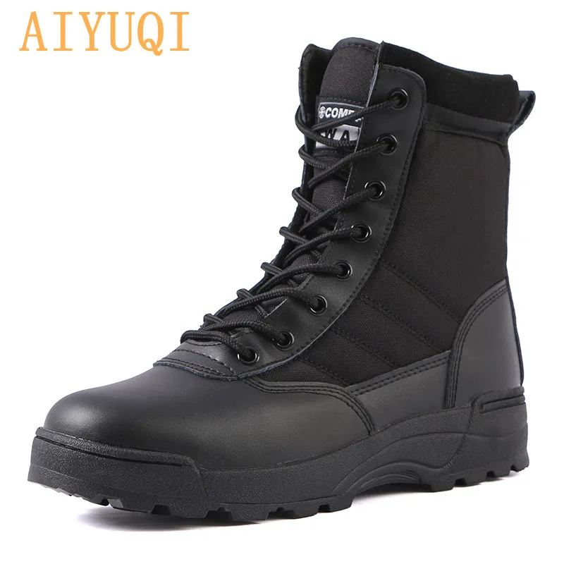 Мужские ботинки AIYUQI в стиле милитари, осенние черные высокие уличные ботинки с защитой от ударов и столкновений, походные ботинки большого размера для мужчин