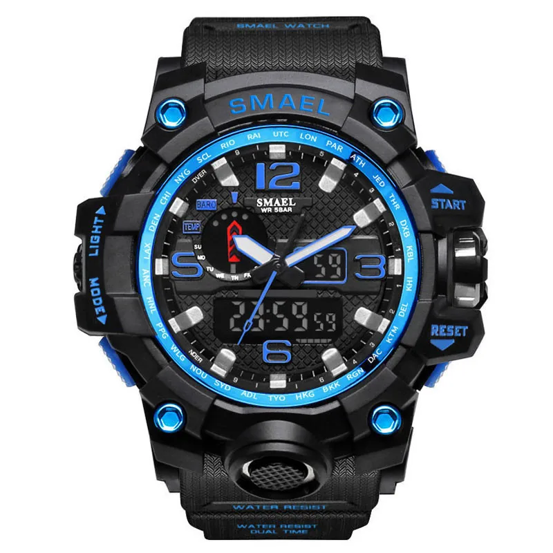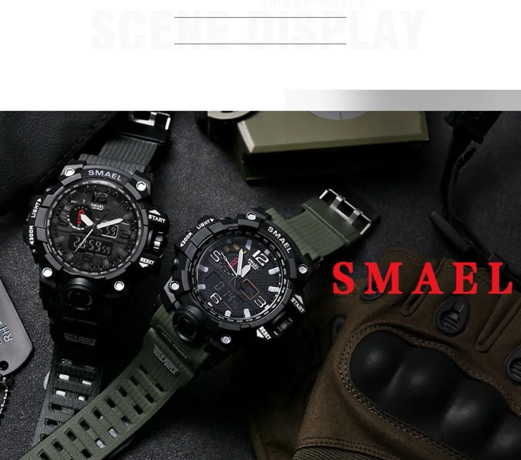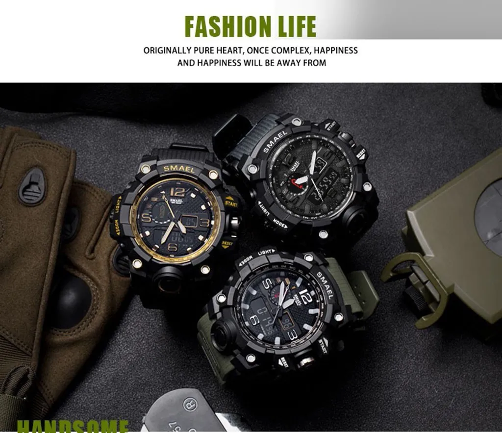 Часы SMAEL с двойным дисплеем, мужские, водонепроницаемые, светодио...