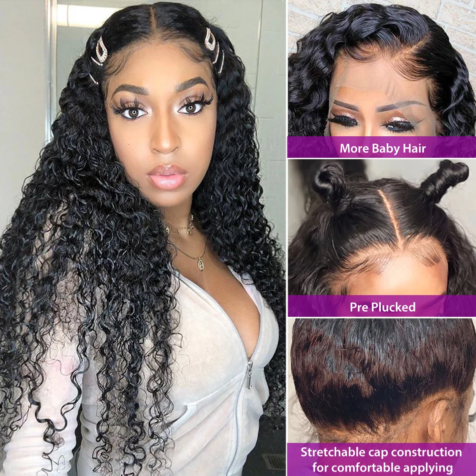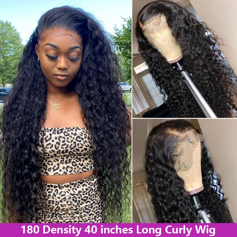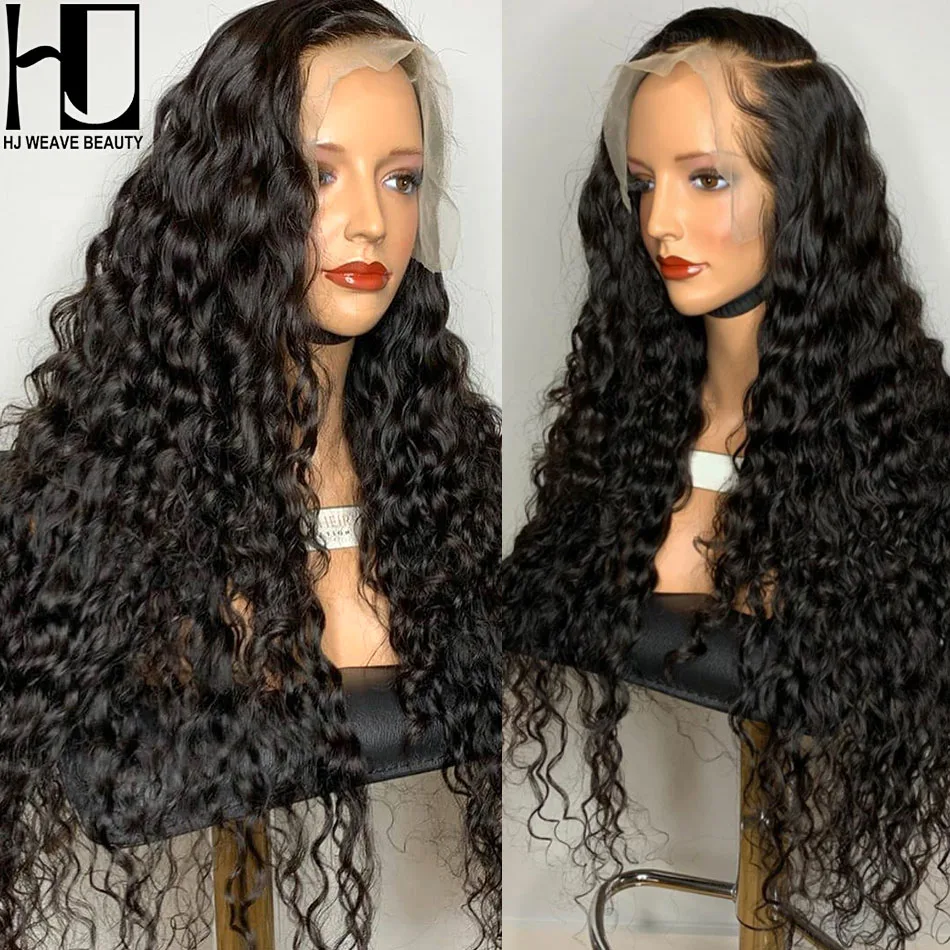 30, 32, 34, 40 дюймов, бесклеевая Бразильская волна воды, кудрявые 13x 4 парики на фронте шнурка, глубокая волна, человеческие волосы, Длинные фронтальные парики, черные женские 200%