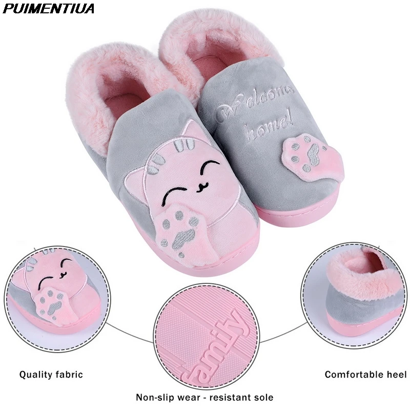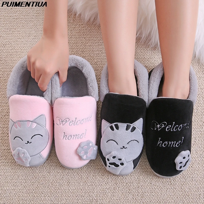 Симпатичные домашние тапочки, женские меховые короткие плюшевые домашние тапочки с мультяшным котом, женские нескользящие мягкие зимние теплые домашние тапочки для спальни, мужчин и пар