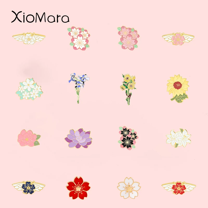 Эмалированные булавки в виде цветов, значок на лацкан с крыльями и цветами вишни, ювелирные изделия, Подарок на годовщину для любимых женщин, оптовая продажа