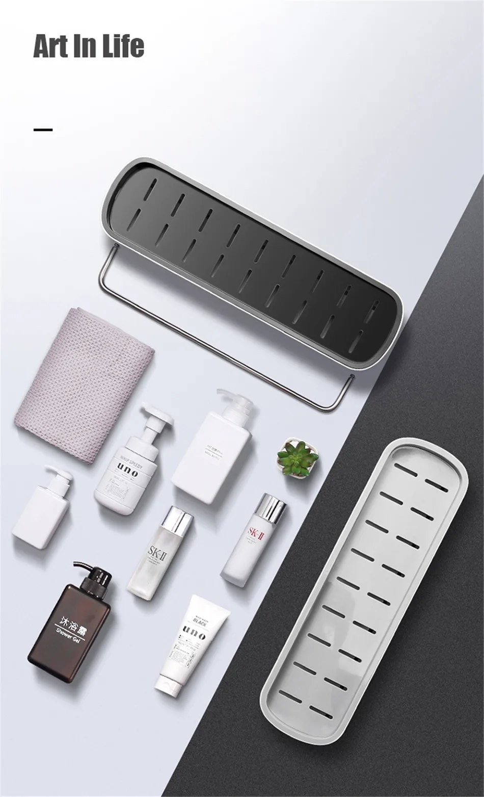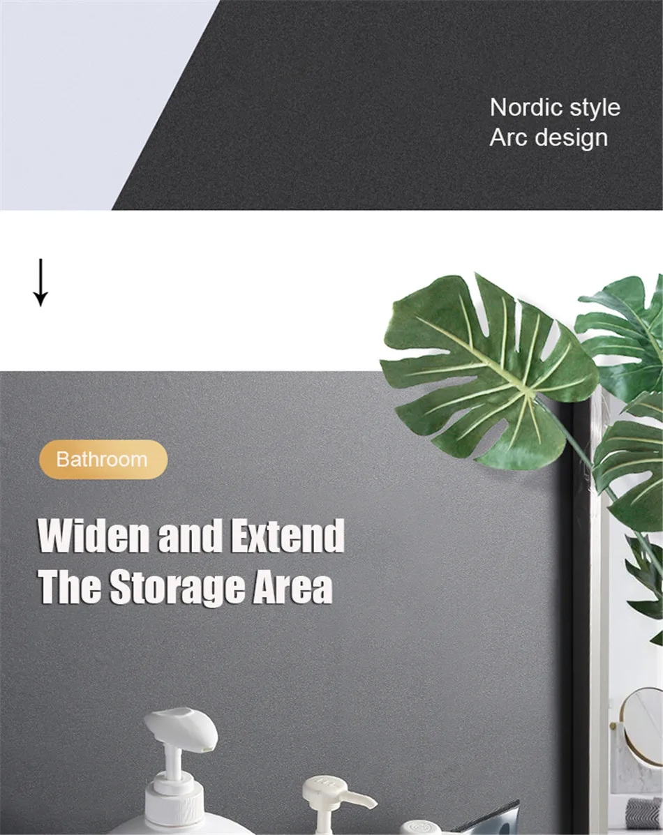 Настенная сливная полка для ванной комнаты, не перфорированная полка для хранения, душевая полка, шампунь для туалета, предметы домашнего обихода, аксессуары для ванной комнатыОсобенности:1. Экономит место;2. Дизайн дуги в скандинавском стиле, искусство в жизни;3. Расширение и расширение площади хранения;4. Также может храниться над туалетом;5. Хорошее хранение бутылок на кухне;6. Сильная Адсорбция, без Пробивной установки;7. Вешалка для полотенец из нержавеющей стали;8. Конструкция слива для удобного хранения;9. Два цвета, подходят для всех пространств;