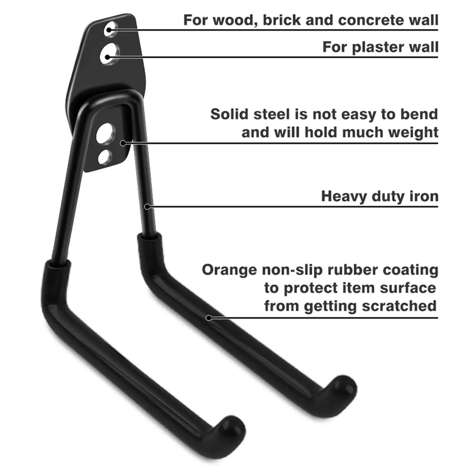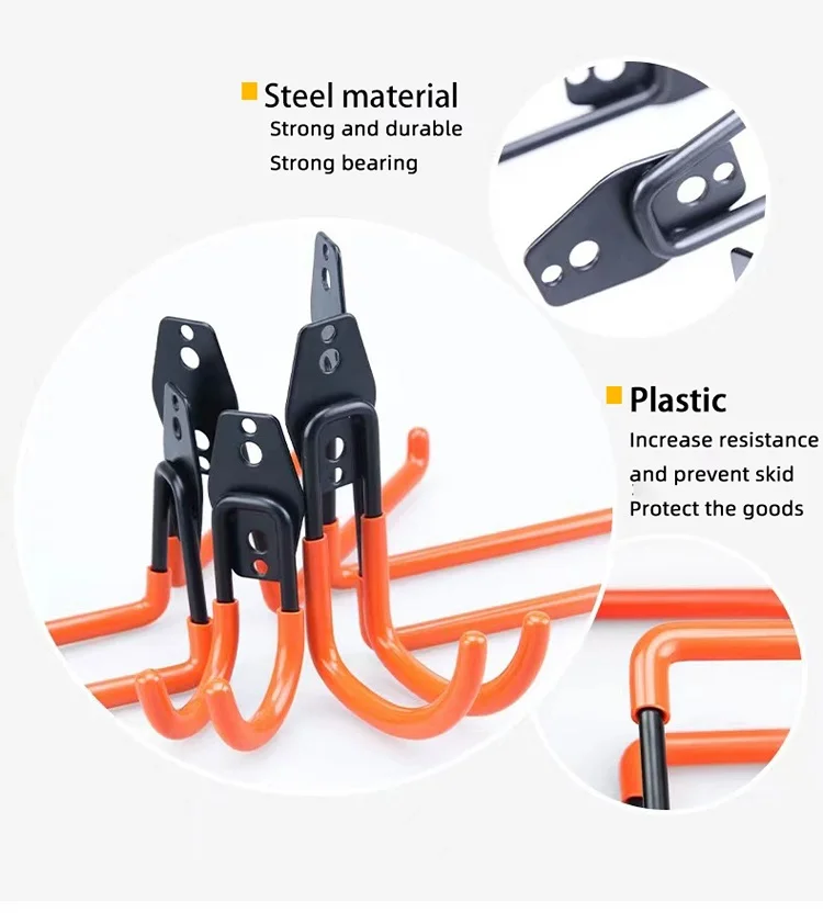 Сверхпрочный стальной гаражный крючок, настенное крепление, крючки для велосипедов, настенное крепление, противоскользящий крючок для хранения садовых инструментов, лестницы, канатов