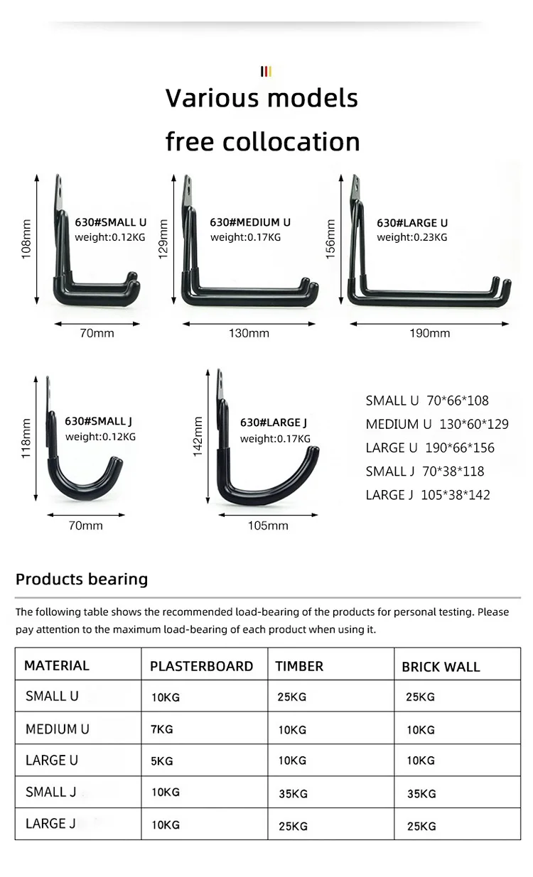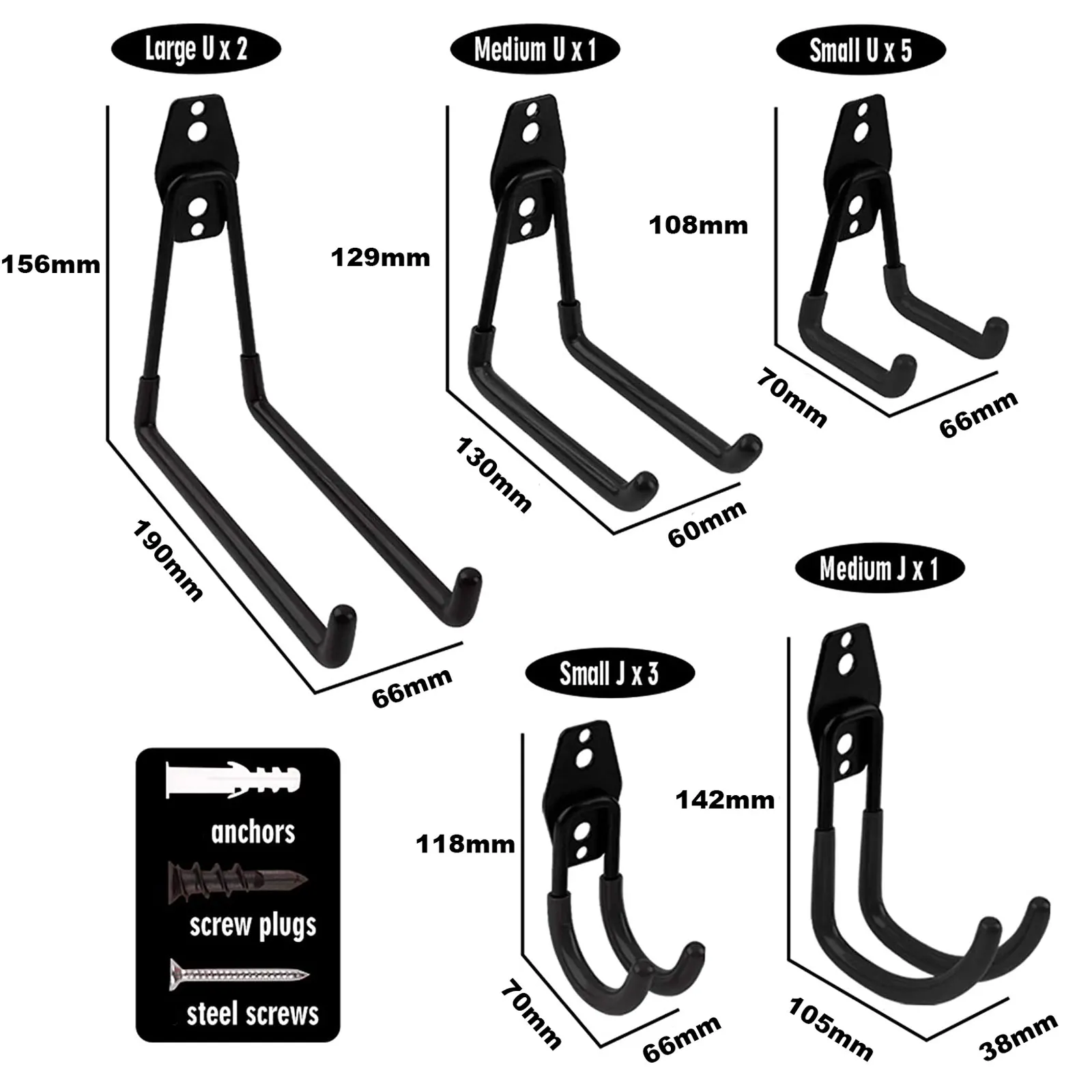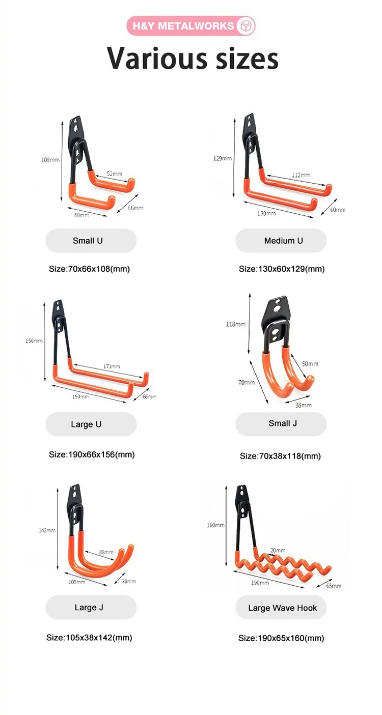 ★【Варьируются размеры и функции 】 наши гаражные крючки имеют шесть разных размеров: U,big U,small U,small J,big J и wave hook. Вы можете повесить инструменты электрика, велосипед, лестницу, бензопилу, катушки, лопаты и т. д.