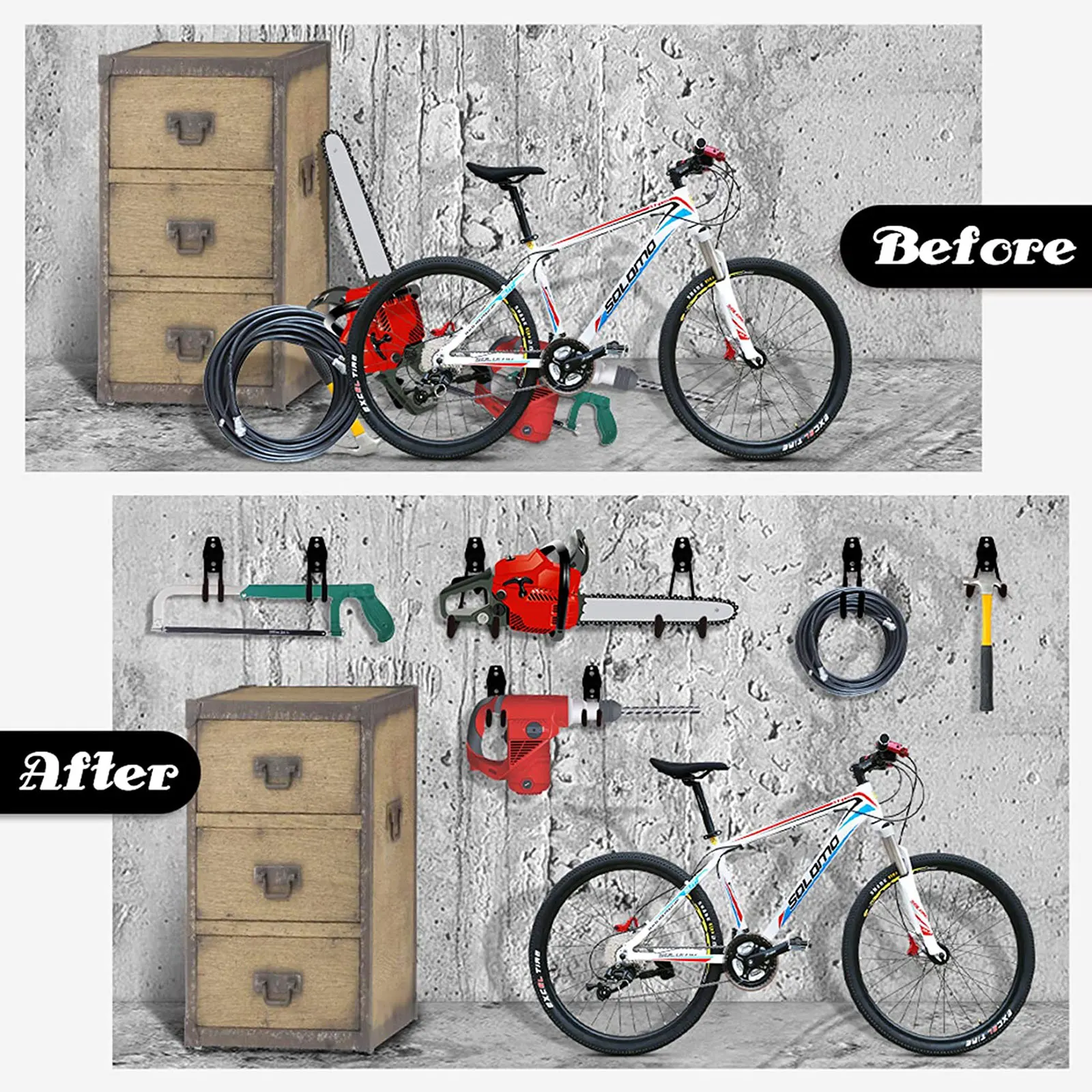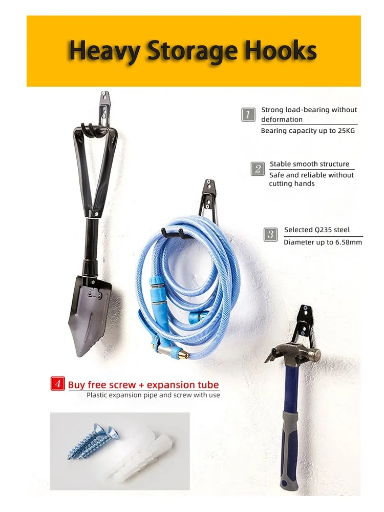 ★【Идеально подходит для тяжелых предметов 】универсальные гаражные крючки добавляют усиленную деталь, чтобы удерживать тяжелые инструменты достаточно безопасно, которые можно использовать для вешания вещей в гараже, саду, сарае и инструментальной комнате.