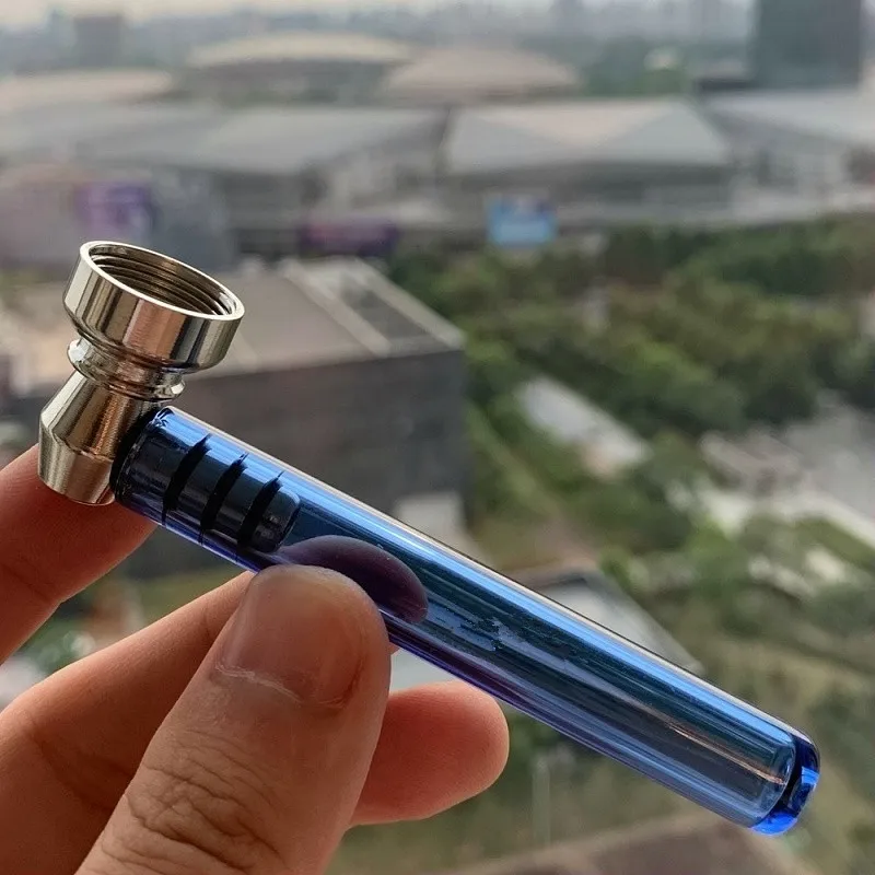 Портативные стеклянные трубки для курения травы, искусственная кожа с металлической чашей, прозрачная ручная ложка, Ванильная трубка, съемная для очистки