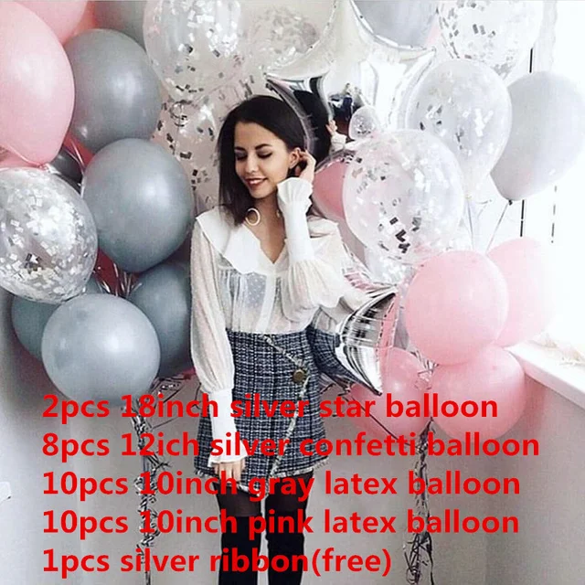 30 шт.компл. 18-дюймовый Серебряный фольгированный шар со звездочками, 10 дюймов, серый, розовый, латексный, серебряный цвет, свадебное украшение, день рождения, arr
