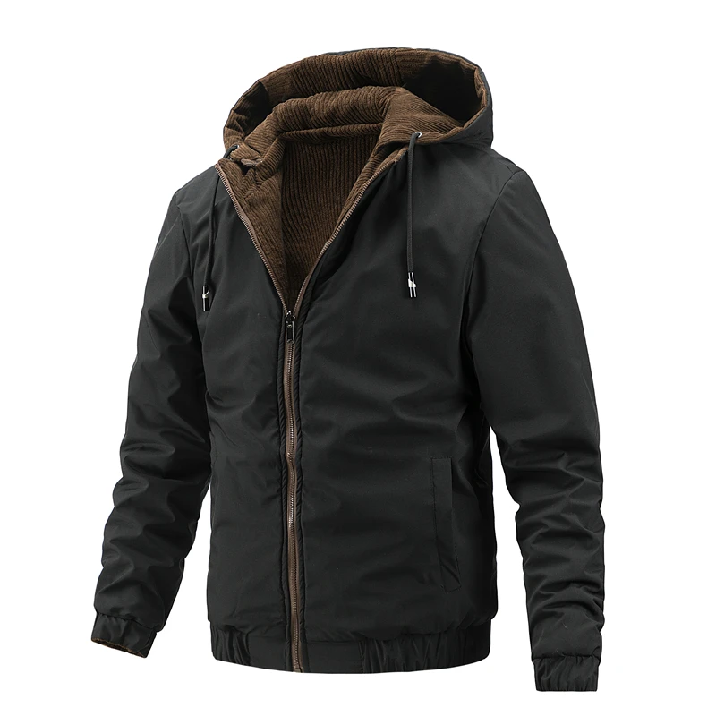 Куртка мужская Вельветовая двухсторонняя, Повседневная Уличная одежда, однотонная спортивная верхняя одежда с капюшоном, Осень-зима