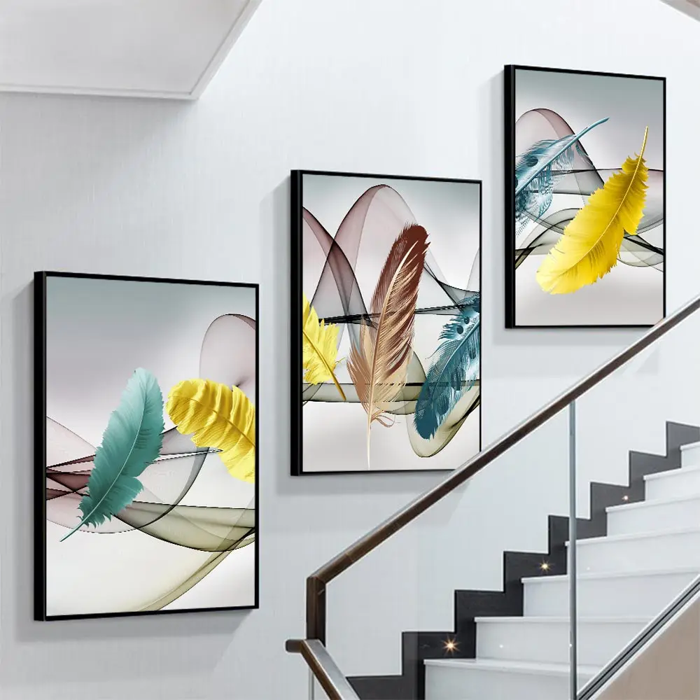 плакаты на стену украшения картина на стену украшения Современное Абстрактное Искусство, красочные перья, картины на холсте, картина маслом, настенные художественные картины для гостиной, домашний декоративный плакат