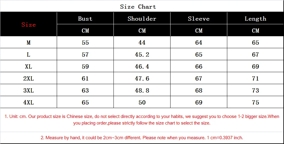 1. Единица измерения: см. Размер нашего продуктаКитайский размер, не выбирайте в соответствии с вашими привычками, мы предлагаем вамЧтобы выбрать на 1-2 размера больше. При размещении заказа, пожалуйста, строго следуйтеТаблица размеров для выбора размера.