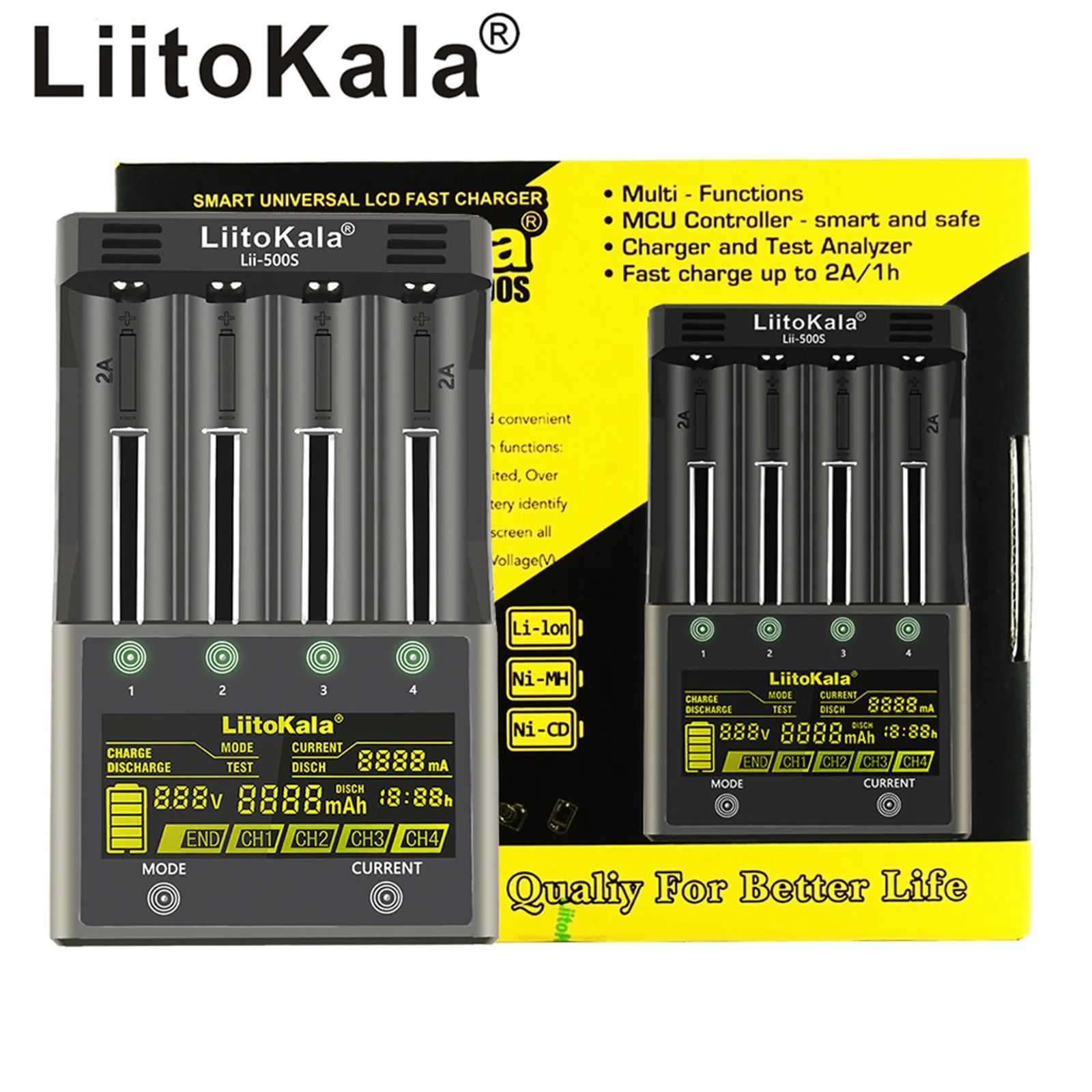 Li-ion / IMR/LiFePO4:26650,21700,20700,18650, 18490, 18350, 17670, 17500, 16340(RCR123), 14500, 10440