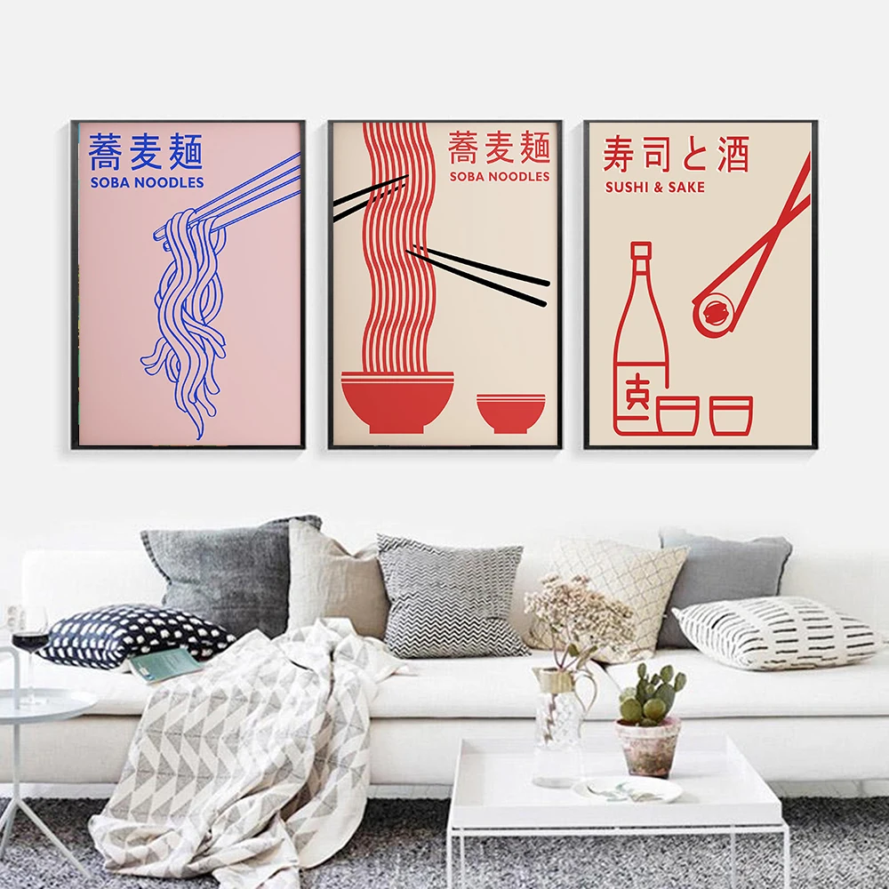 Настенная ретро-картина в скандинавском стиле, японская кухня, ресторан, холст, живопись, лапша, постер, суши, саке, картины для украшения кухни