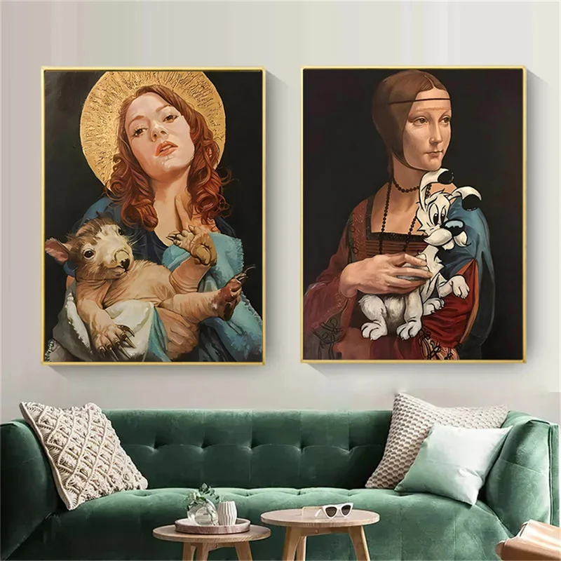 Картина на холсте с изображением девушки обнимающегося щенка, настенное искусство, портрет, картина маслом, постер, домашний декор, нордическая Классическая картина для гостиной