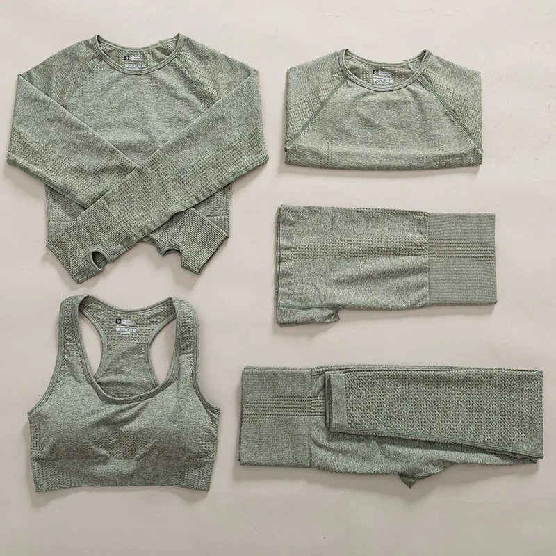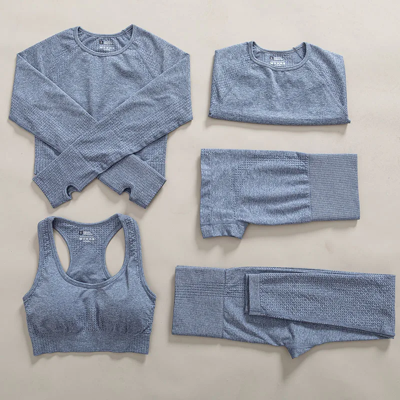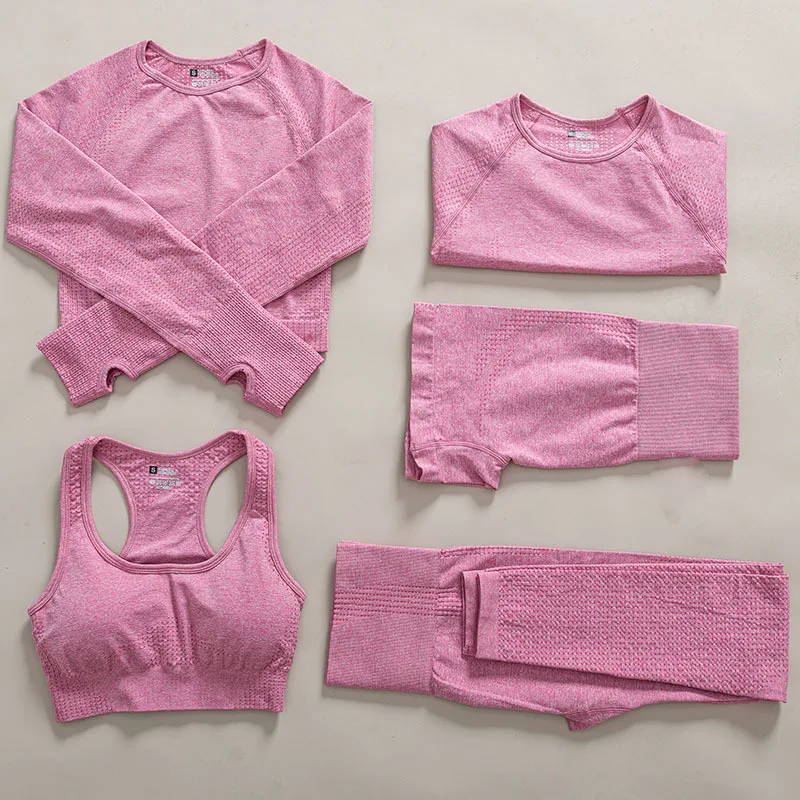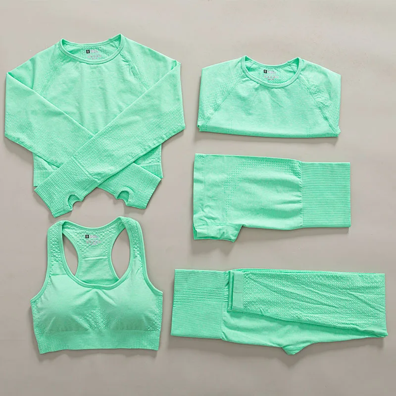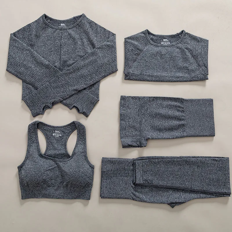 5 шт тренажерный зал комплект бесшовные утягивающиекостюм женский с...
