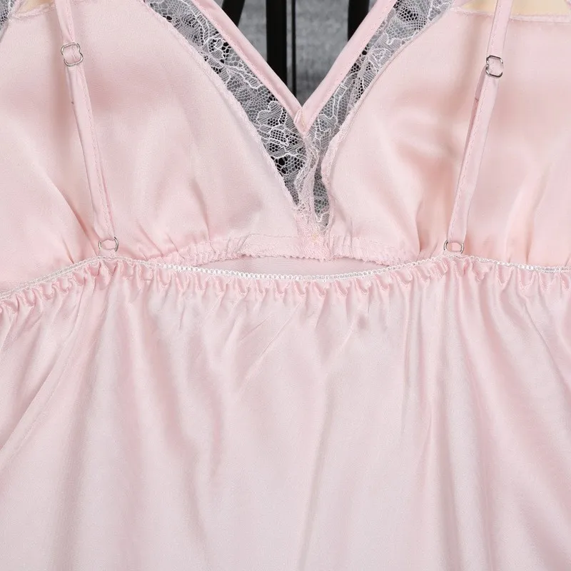 Ночная сорочка на бретелях, атласная Женская одежда для сна с бантом, летняя сорочка, ночная рубашка с V-образным вырезом, платье для сна, женское тонкое нижнее белье